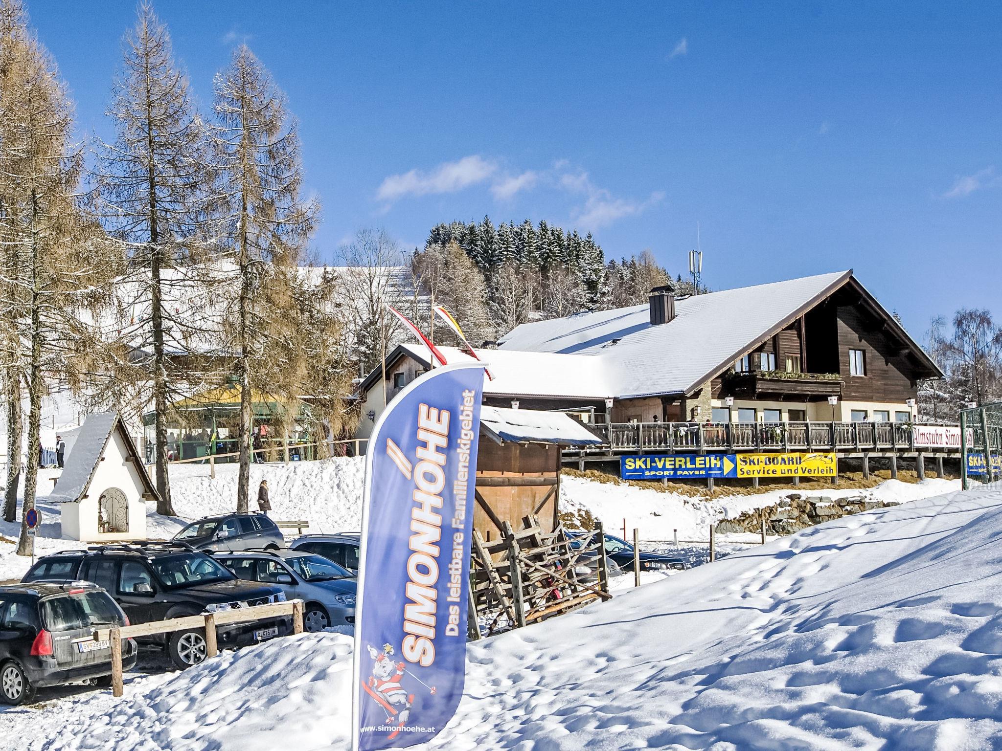 House "Simonhöhe", 2 storeys, surrounded by trees and meadows. 4 apartments in the property. Above St.Urban, in the district of Simonhöhe, 50 m from the edge of the forest, 7 km from the lake, 20 m from the skiing area. In Winter: please take snow chains. Parking. Supermarket 5 km, restaurant 100 m, bicycle rental 200 m, bus stop "St. Urban" 7 km, bathing lake "St. Urban See" 7 km. Riding stable 6 km, walking paths from the house, cycle lane 50 m, ski lift 40 m, slopes 20 m, ski rental 10 m, ski school, children's ski school, cross country ski track 40 m. Nearby attractions: Minimundus die kleine Welt am Wörthersee 33 km, Moosburg Sommerrodelbahn 25 km, Burg Landskron Affenberg & Greifvögel 37 km. Well-known ski regions can easily be reached: Simonhöhe 20 m, Gerlitzen 40 km, Bad Kleinkirchheim 40 km. Well-known lakes can easily be reached: Maltschacher See 14 km, Wörthersee 29 km, Ossiacher See 29 km. Hiking paths: ca 100km Wanderwege von 8-28km Länge, 10 Mountainbike-Trails und Kids Area, Mountain-Cart über die Skipisten. Please note: suitable for families. In case of good snow conditions, the house is accessible on skis. Loading and unloading of baggage is possible at the holiday house. Additional accommodations can be booked. Property ref. 300.1,2,3,4 is situated on the same property.