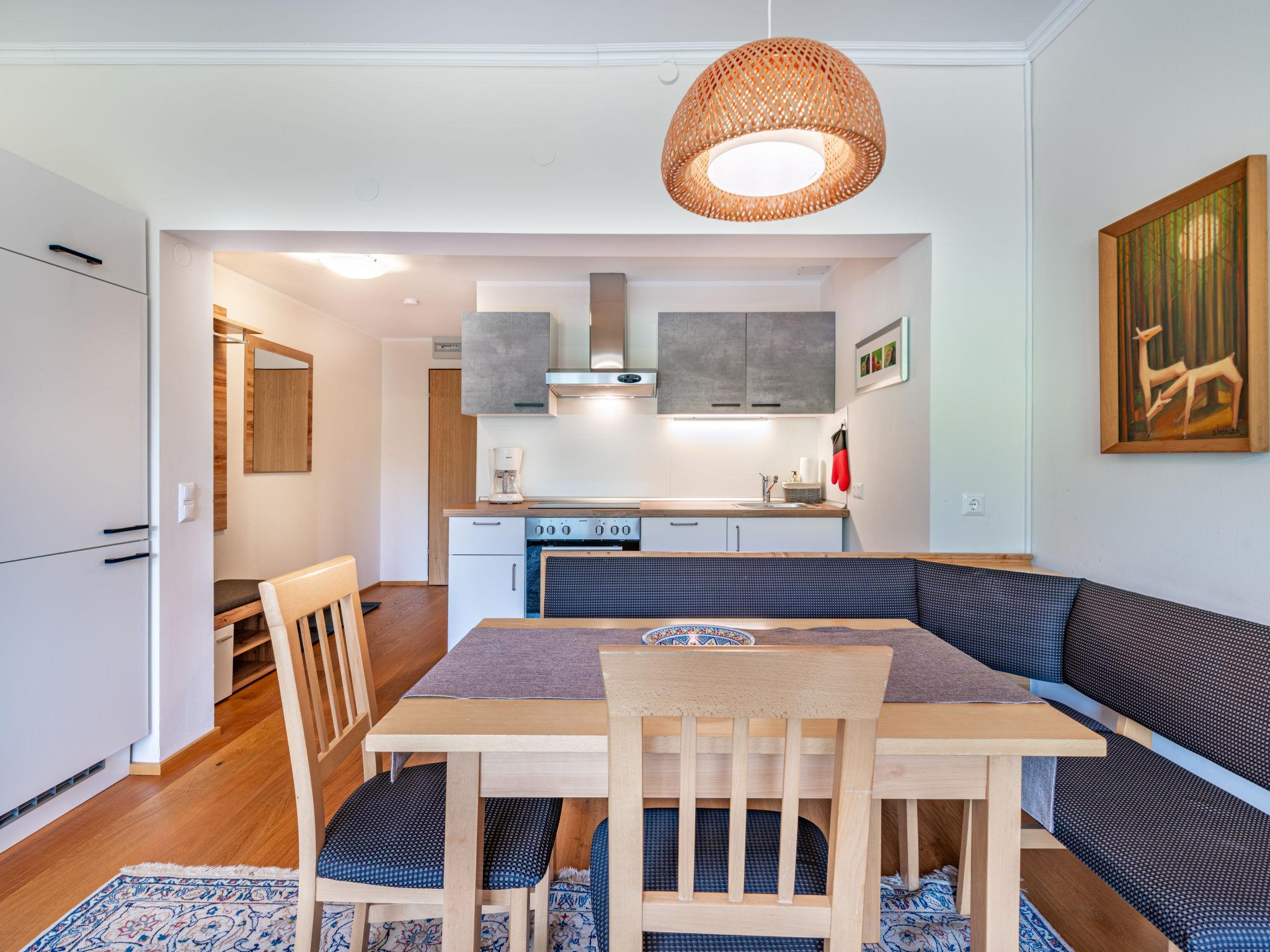 "Hocheck", 3-room apartment 60 m2, on the upper floor. Object suitable for 6 adults. Renovated in 2025, tasteful and cosy furnishings: living/dining room with 1 double sofabed (140 cm, length 200 cm). Exit to the balcony. 2 double bedrooms. Open kitchen (oven, dishwasher, 4 ceramic glass hob hotplates, electric coffee machine). Shower/WC. Parquet floors. Small balcony. Balcony furniture. Very beautiful panoramic view of the mountains and the countryside. Facilities: baby cot, hair dryer. Internet (WiFi, free). Please note: suitable for families. Fridge without freezer, non-smoking house. Smoke alarm, fire extinguisher.