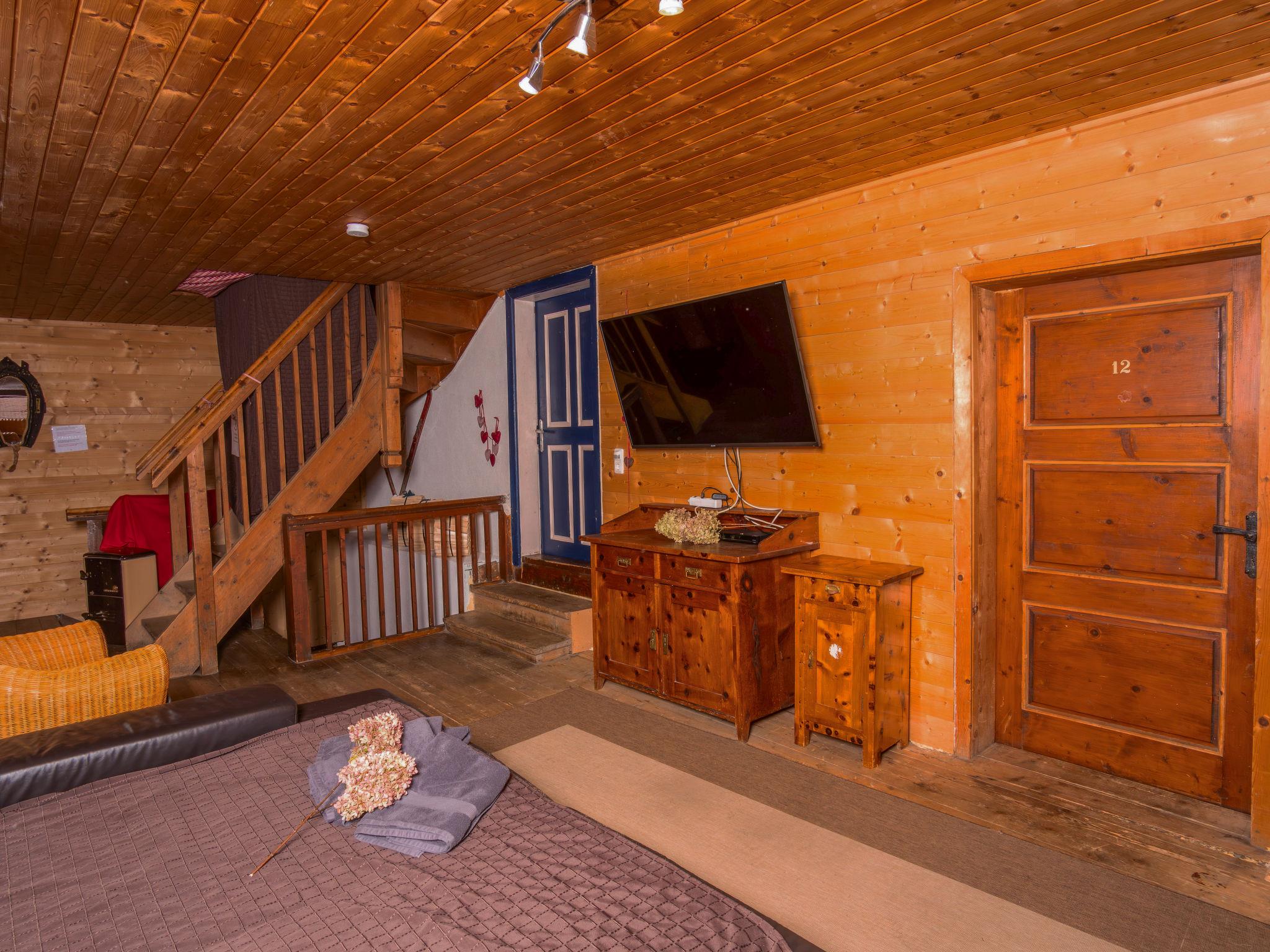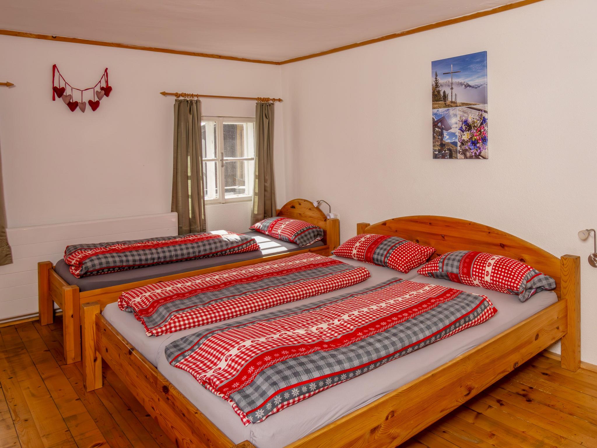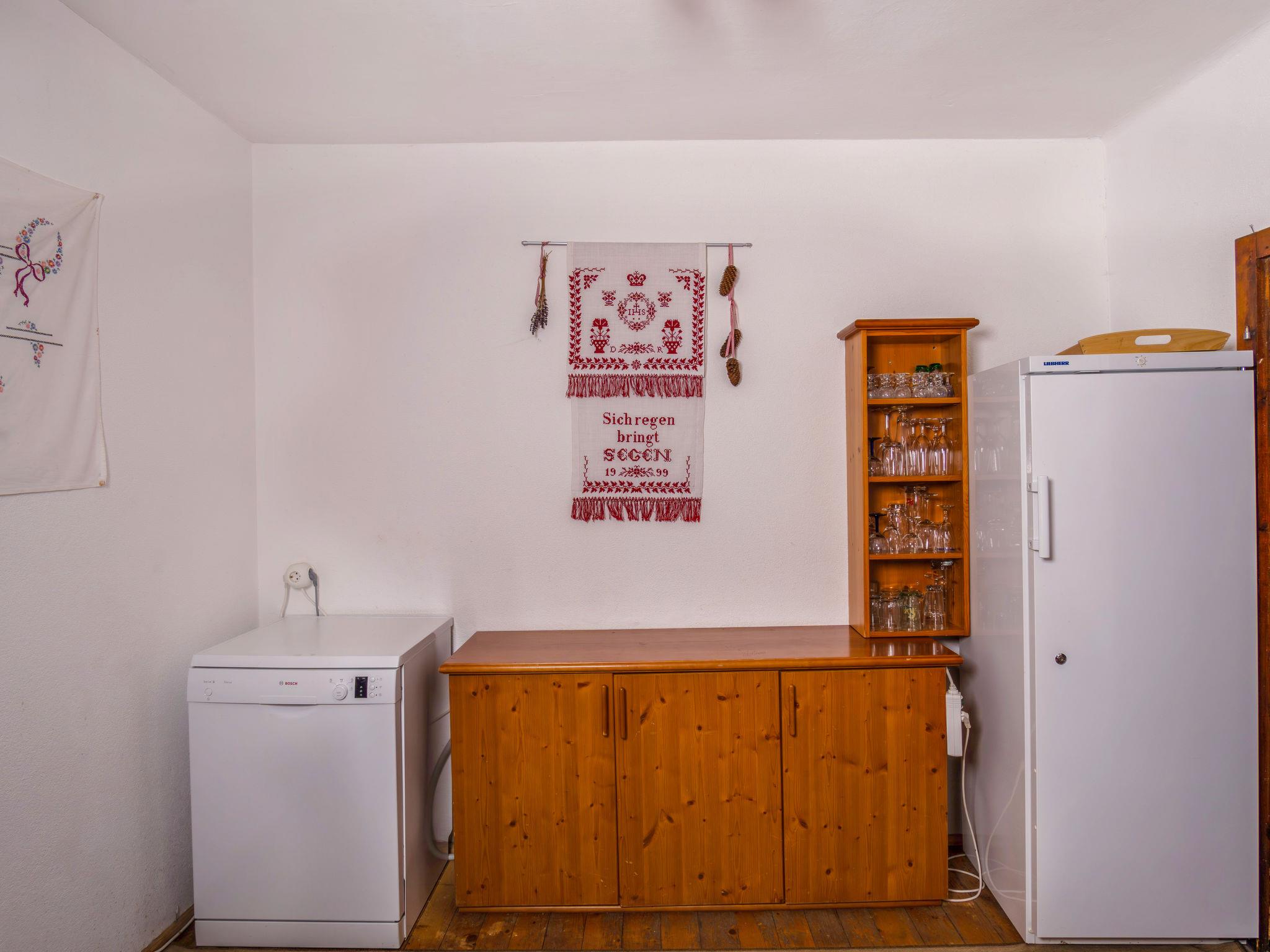 "Lehen", 6-room house 180 m2 on 2 levels. Cosy and wooden furniture furnishings: entrance hall with Scandinavian wood stove. Kitchen-/living room (oven, dishwasher, 4 ceramic glass hob hotplates, kettle, freezer, electric coffee machine, raclette grill) with dining table and wood-burning stove. 3 showers, sep. WC, Sauna. Upper floor: open living room with satellite TV (flat screen). 2 rooms, each room with 3 beds and 1 double bed. 1 double bedroom. 1 room with 1 bed and 1 double bed. Sep. WC. Electric heating. Wooden floors. Terrace roofed. Terrace furniture, barbecue, deck chairs. Panoramic view of the mountains. Facilities: children's high chair, baby cot. Internet (WiFi, free). 50420-004014-2020