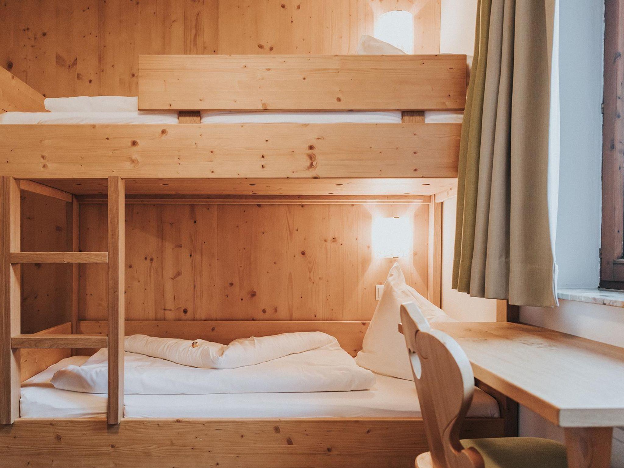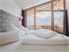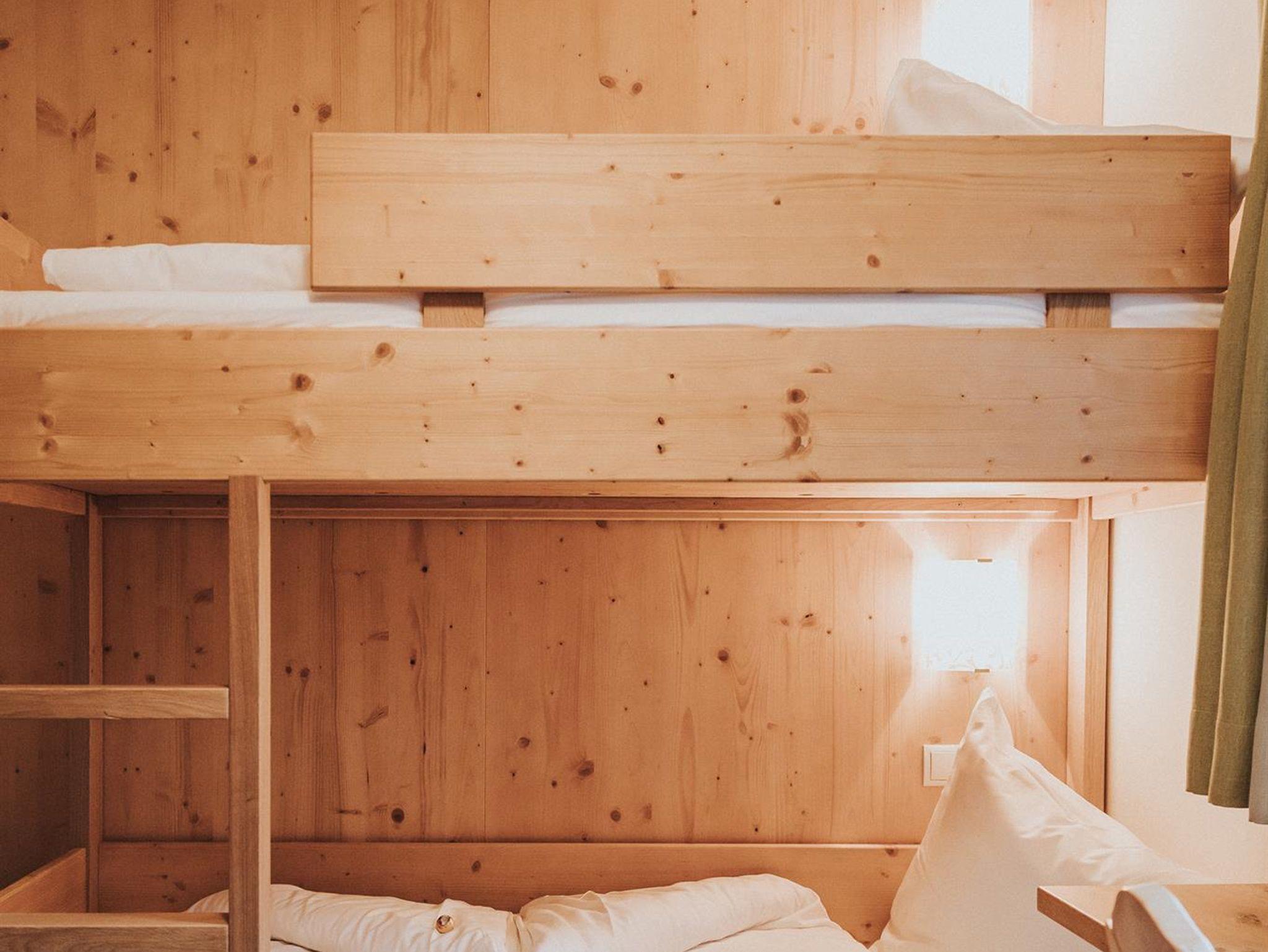 Panorama-Familienzimmer mit 2 getrennten Schlafräumen und Panorama-Südbalkon. Elternschlafzimmer mit großem Doppelbett, Kinderschlafzimmer mit Stockbett (90x200), Bad mit WC getrennt,