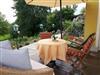 Kaffee und Tee Zubehör sind genau wie das W-LAN (free Wifi) im Preis inkludiert. Eine Aufbettung für zwei bis drei Personen ist im Wohnzimmer möglich. Die Holzdielenterasse ladet ein den Blick in den Landhausgarten zu genießen.