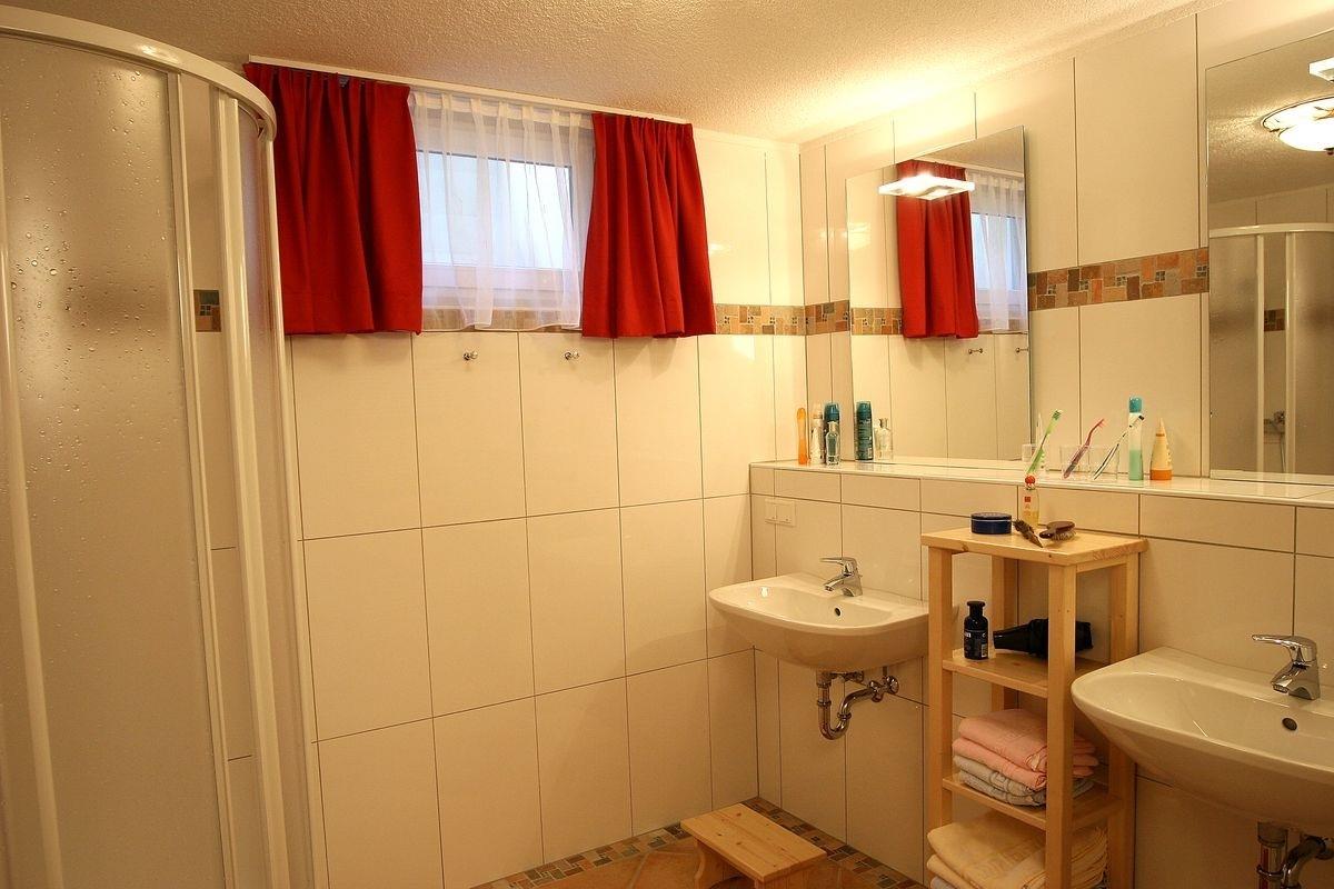 1 Badezimmer mit Dusche & zwei Waschbecken