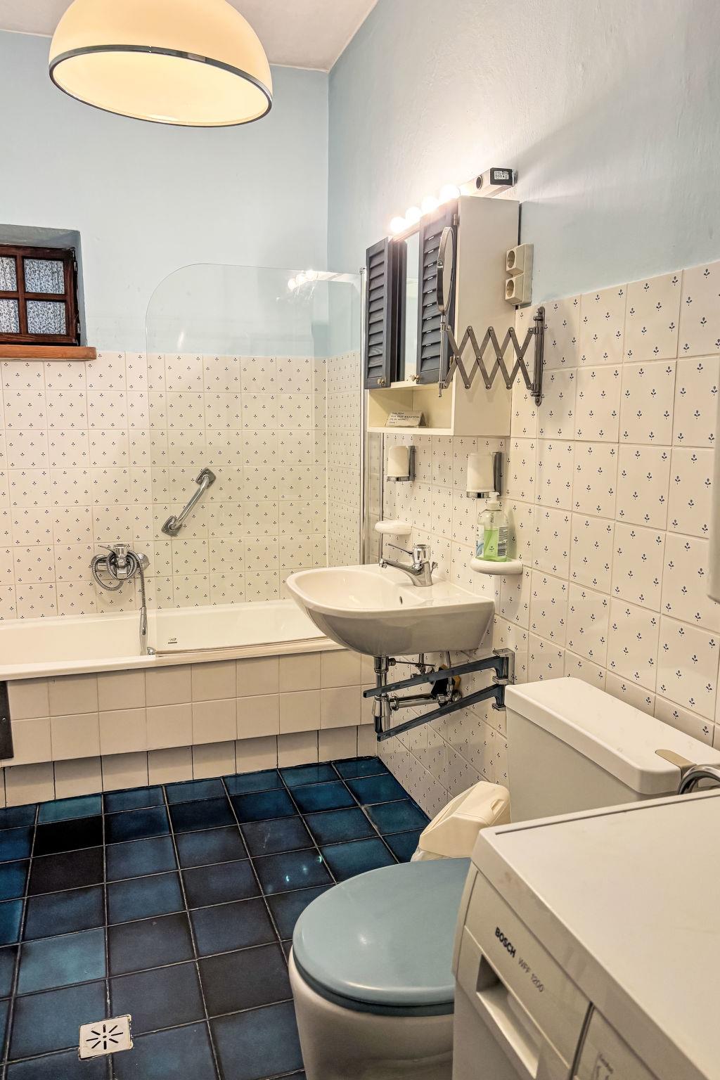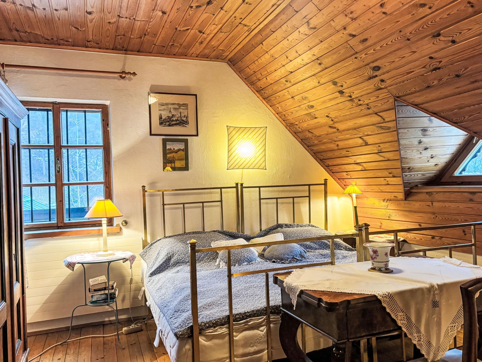 "Himmelreichmühle", 7-room house 160 m2. Wooden furniture furnishings: large lounge with satellite TV and international TV channels (flat screen), radio and tiled stove. Exit to the garden. 1 room with 1 bed. Kitchen-/living room (oven, dishwasher, 4 ceramic glass hob hotplates, toaster, kettle, electric coffee machine, Capsules for coffee machine (Senseo) extra) with dining table. Bath/WC. Heating. Upper floor: 1 double bedroom. Exit to the balcony. 1 room with 1 bed and 1 double bed. 1 room with 2 beds. 1 double bedroom. Exit to the garden. Bath/WC, double hand-basin. Heating. Wooden floors. Garden. Barbecue, deck chairs. Facilities: washing machine, iron, mosquito net, children's high chair, baby cot for up to 2 year olds, hair dryer. Internet (WiFi, free). Please note: non-smoking house.