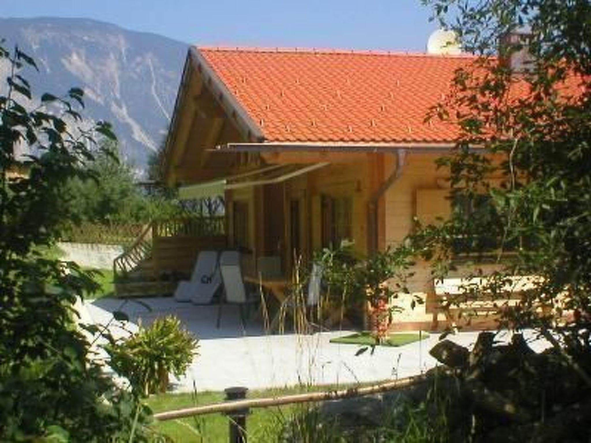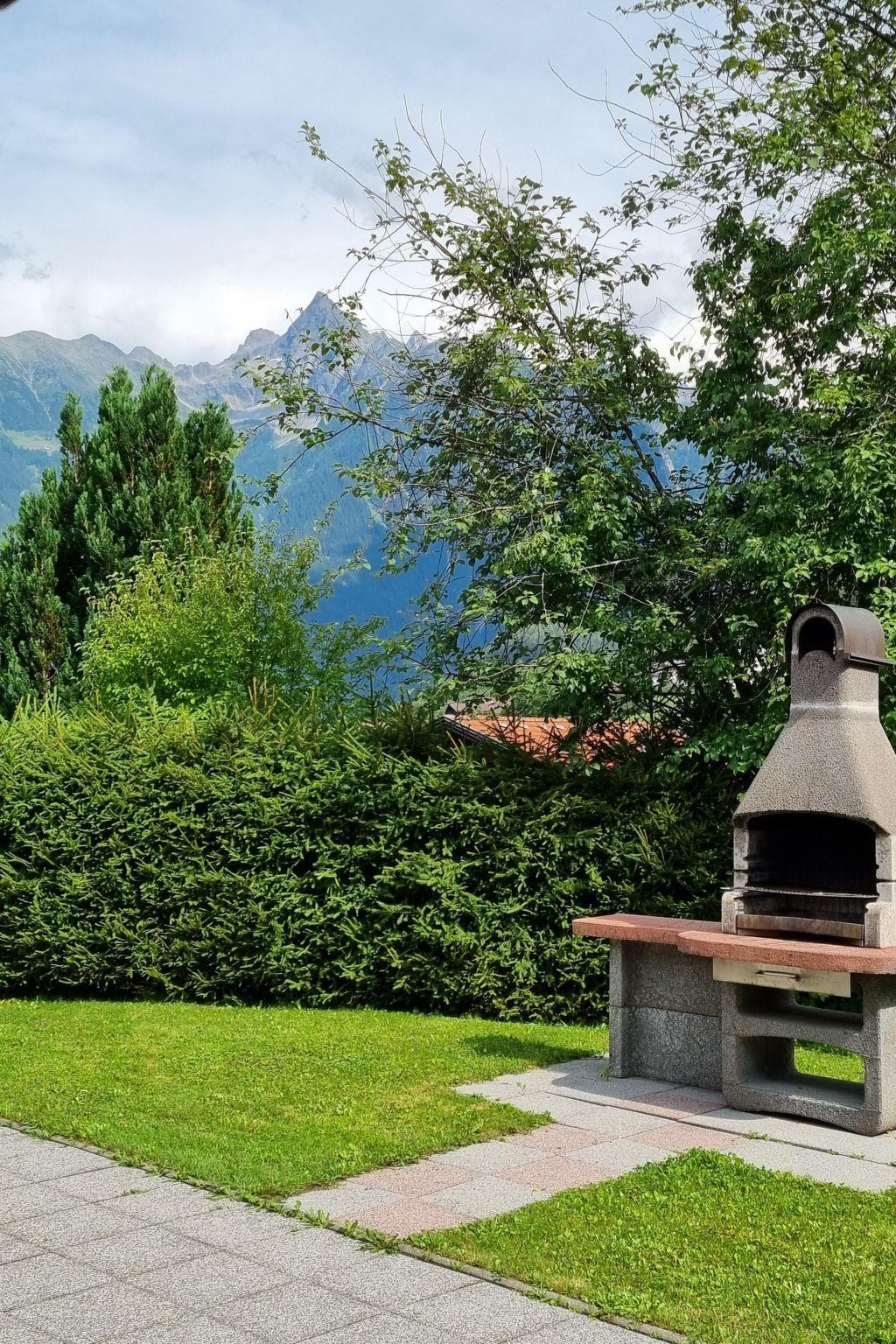 Large sun terrace with magnificent panoramic views of the surrounding mountains and sunbathing lawn, covered terrace (so that even a small rain shower does not matter), awning, charcoal barbecue and garden furniture.