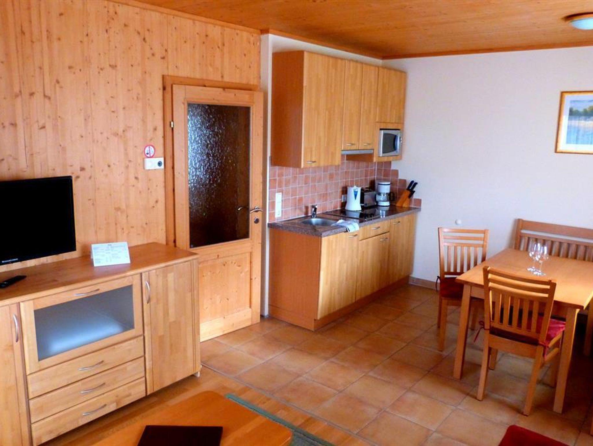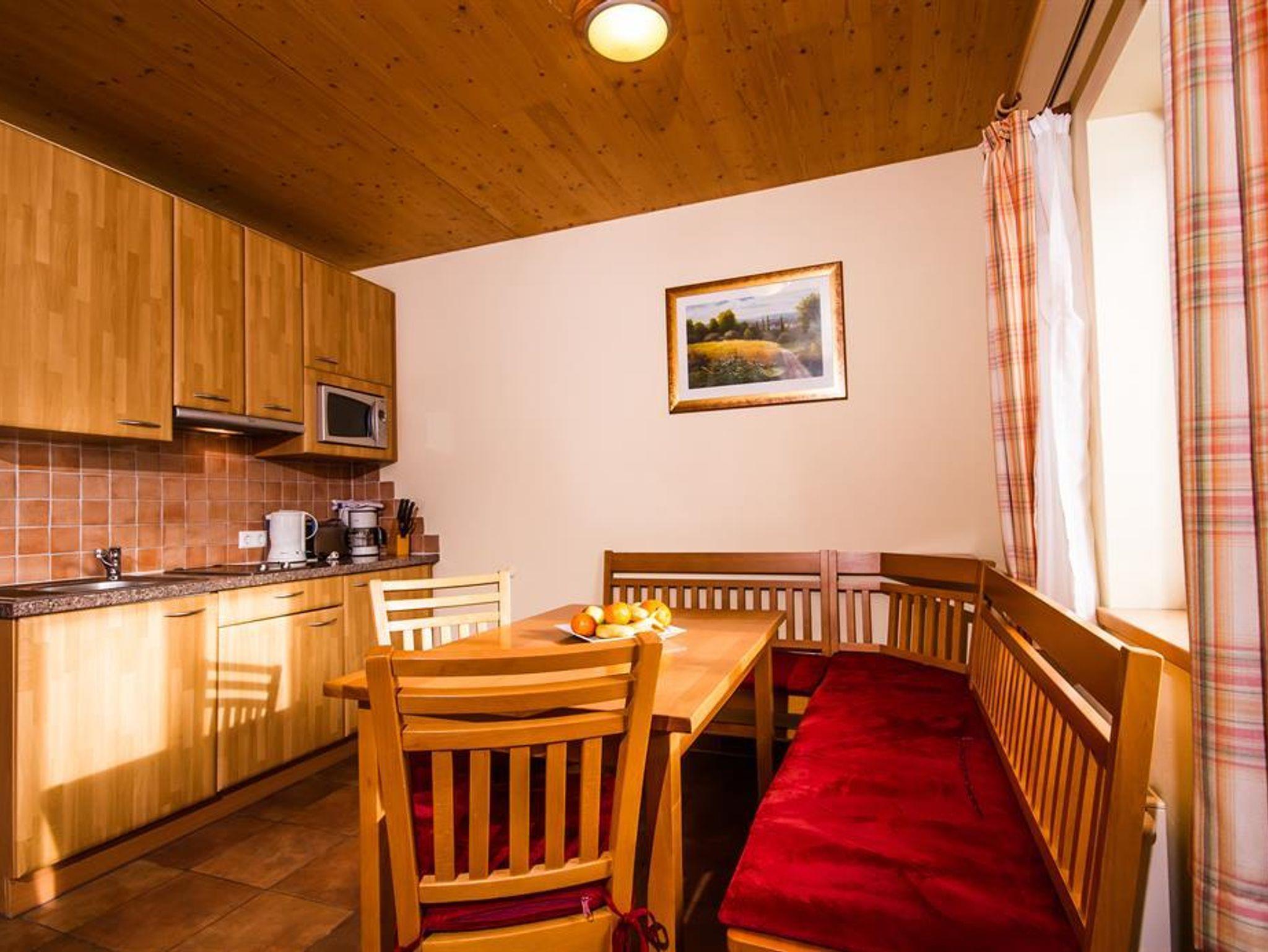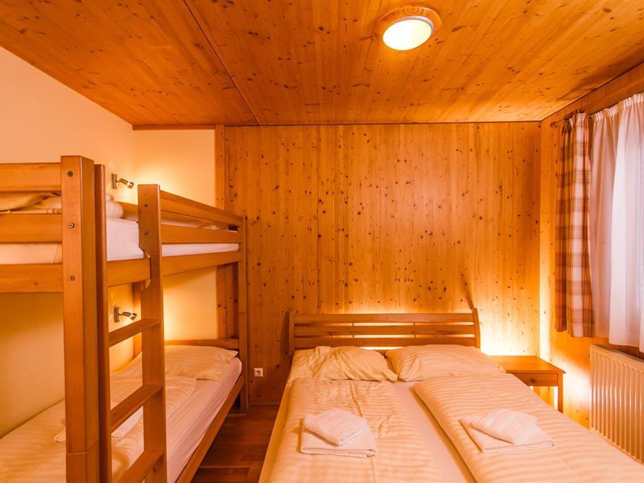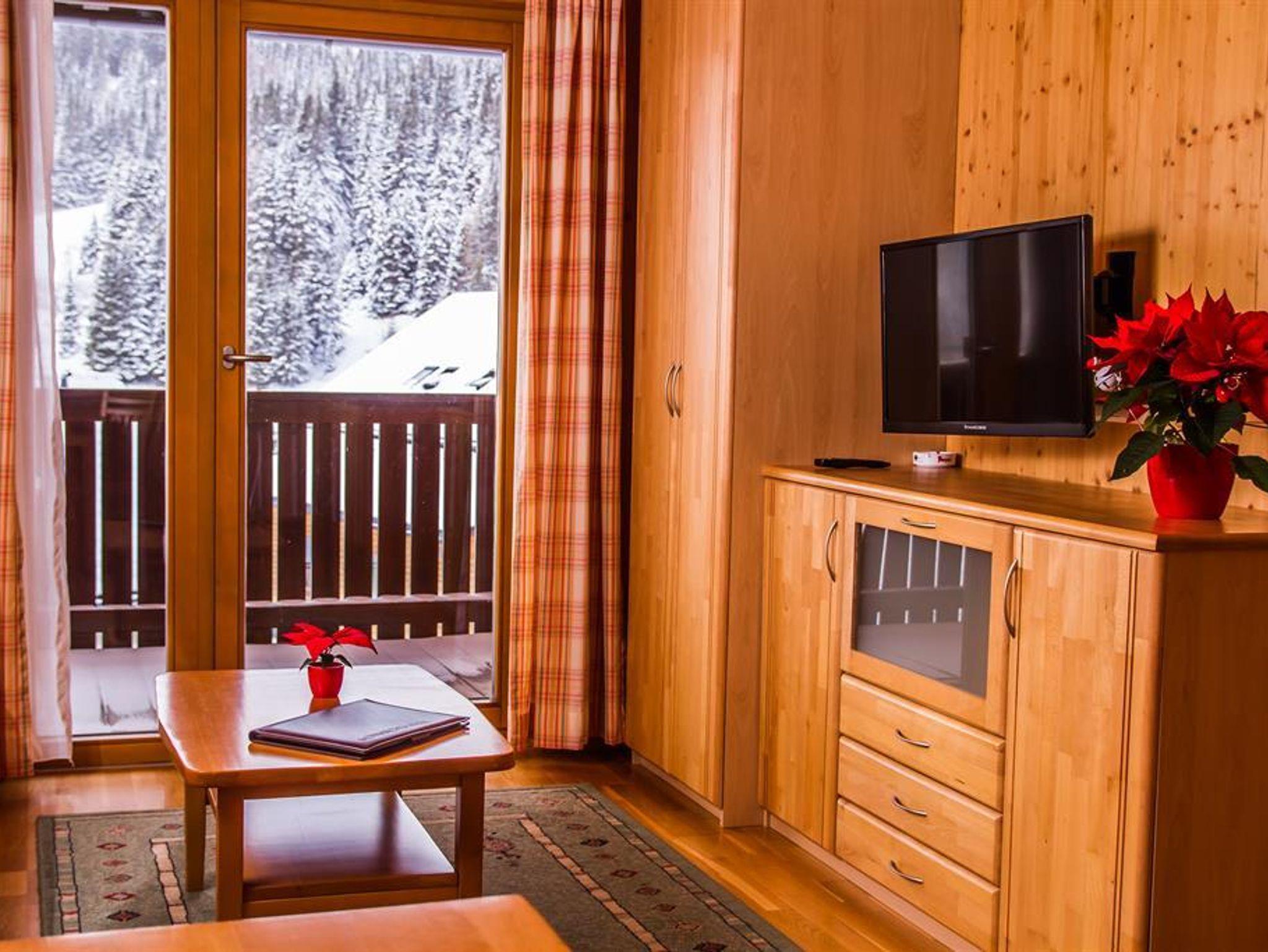 Gemütlich und modern eingerichtetes Appartement, Schlafzimmer mit Stockbett, großzügiger Wohnraum mit Doppelschlafcouch, SAT-TV, Zimmersafe, Bad/WC getrennt, voll ausgestattete Küche – Kühlschrank mit Eisfach, Mikrowelle, E-Herd mit Ceranfeld, Kaffemaschine, Toaster etc. sowie mit einer Essecke. Eigener Skistall für jedes Appartement. Zusätzlich bietet jedes Appartement eine eigene Balkon-Loggia mit Tisch und Stühlen, und einen traumhaften Panoramaausblick. Auf Wunsch stellen wir gerne Kinderbetten, Kinderhochstühle, und Babybadewannen kostenlos zur Verfügung.