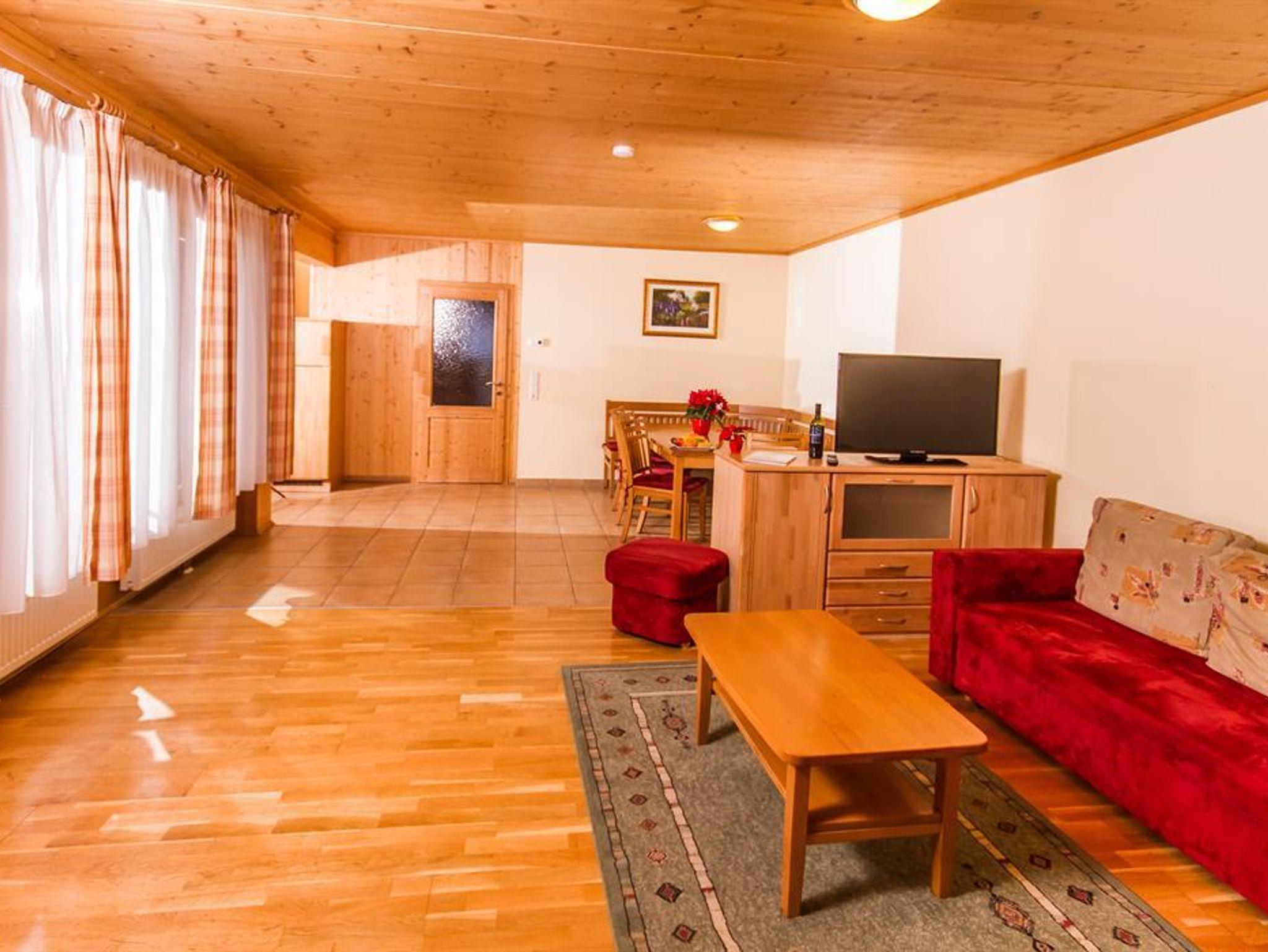 Gemütlich und modern eingerichtetes Appartement, 3 Schlafzimmer (eines davon mit einem zusätzlichen Stockbett), großzügiger Wohnraum mit Doppelschlafcouch, SAT-TV, Zimmersafe, 2 Badezimmer, eine eigene SAUNA oder Dampfbad, voll ausgestattete Küche – Kühlschrank mit Gefrierschrank, Mikrowelle, Geschirrspüler, Backofen, E-Herd mit Ceranfeld, Kaffemaschine, Toaster etc. sowie mit einer Essecke. Eigener Skistall. Zusätzlich bietet jedes Appartement eine eigene Balkon-Loggia mit Tisch und Stühlen, und einen traumhaften Panoramaausblick. Auf Wunsch stellen wir gerne Kinderbetten, Kinderhochstühle, und Babybadewannen kostenlos zur Verfügung.