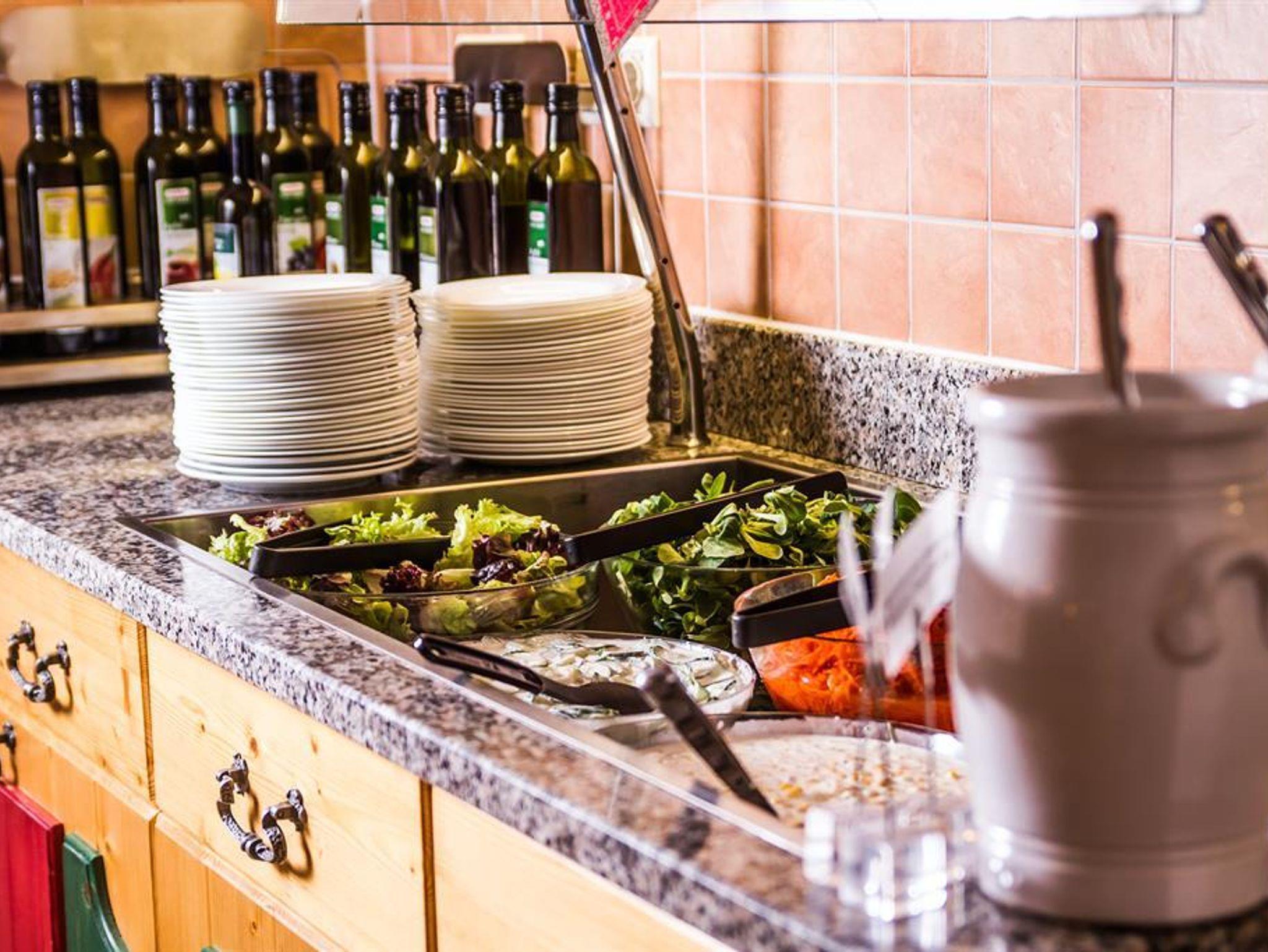 Halbpension Exklusiv (Frühstücksbuffet und 4 Gang Abendmenü mit Salatbuffet) oder Standard (Frühstücksbuffet und 2 Gang Abendmenü mit Salatbuffet) vor Ort buchbar.