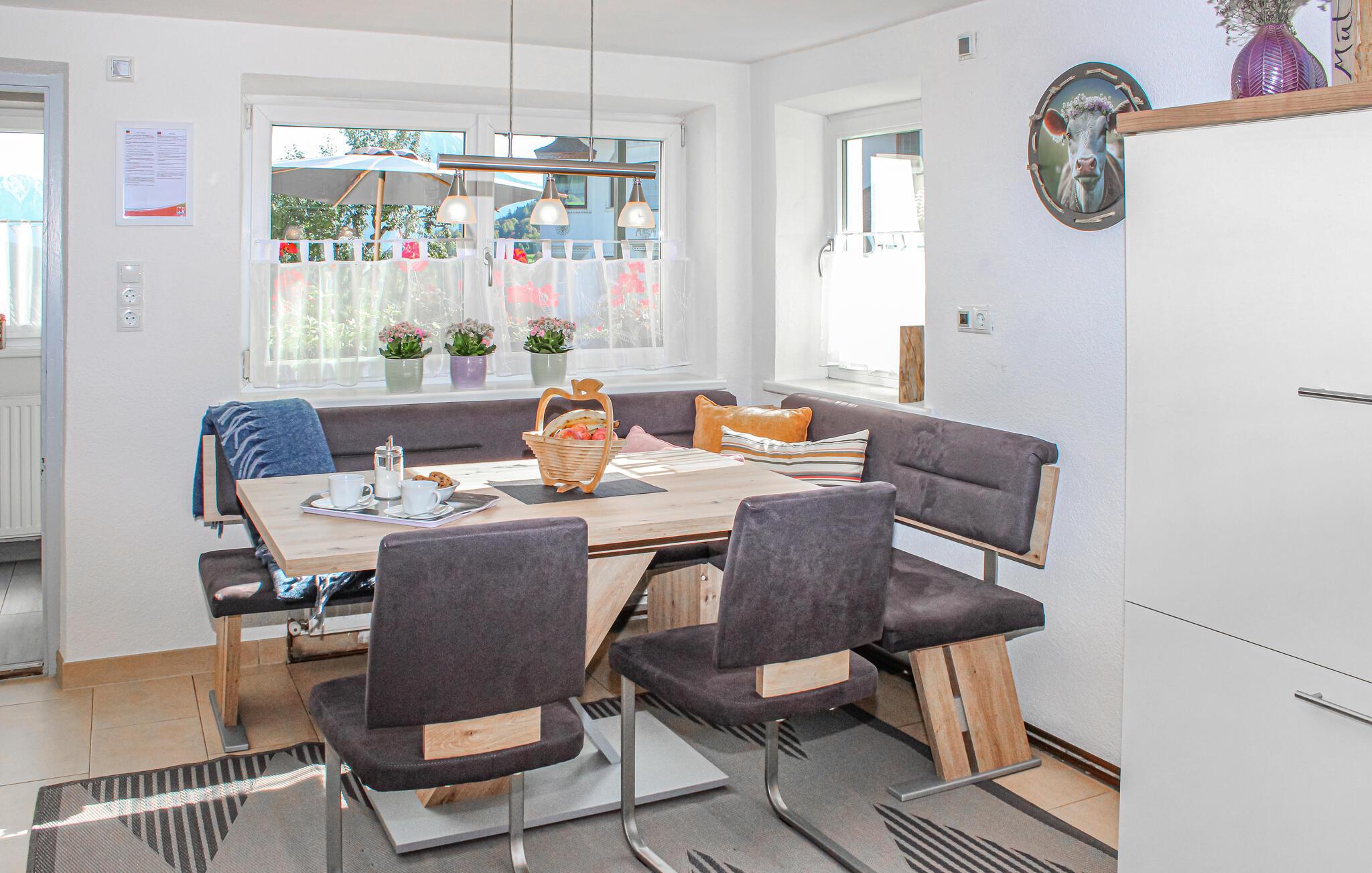 Lad hverdagen bag jer og nyd et afslappende ophold i dette indbydende hus, der er en del af en fungerende gård. Træd ind i en charmerende og hyggelig stue med komfortable møbler og indbydende farver. Her kan I slappe af efter jeres eventyr med gode samtaler og brætspil. Nyd måltider sammen ved spisebordet, mens I lægger planer for den næste dag.