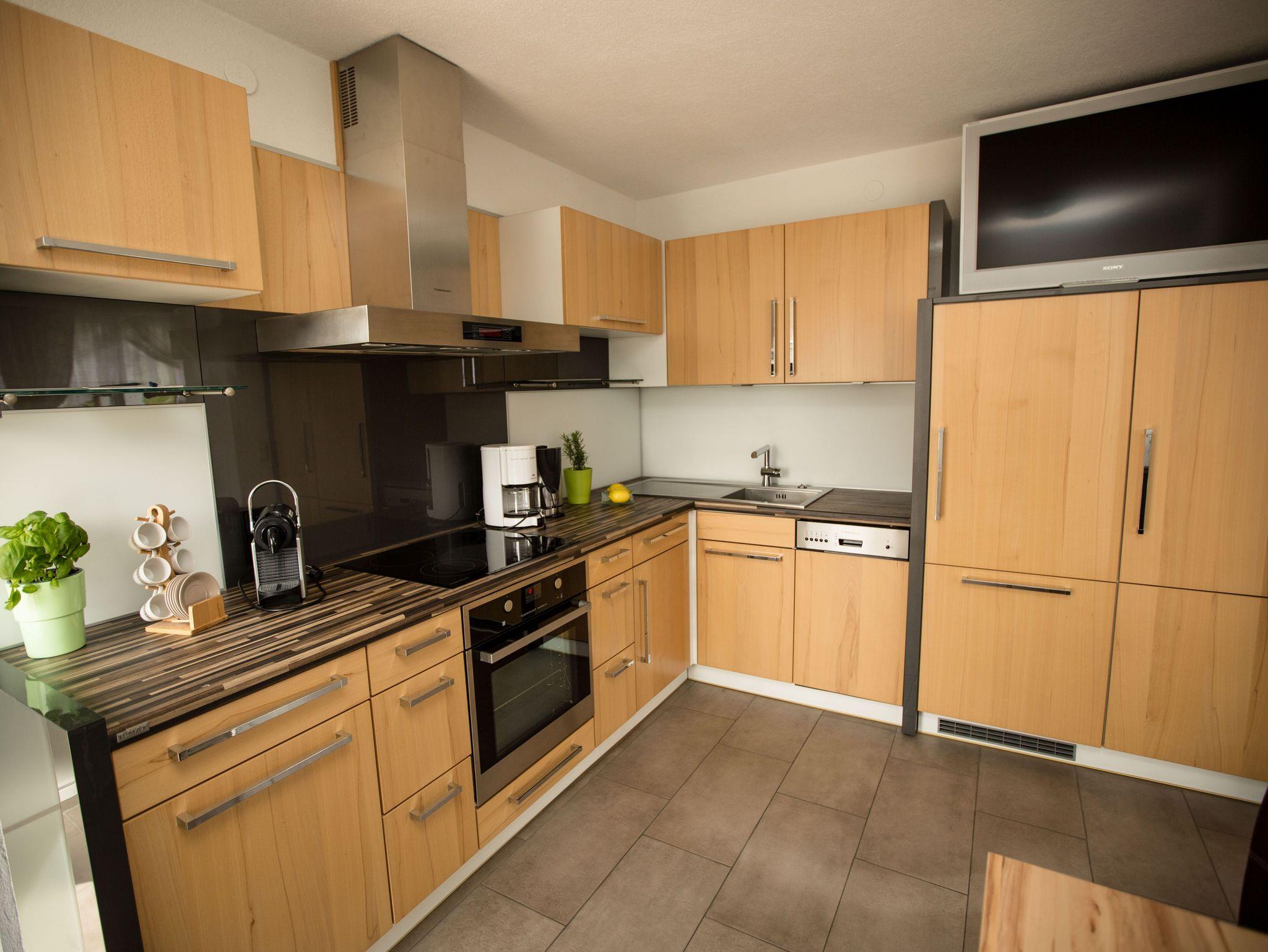 Dieses Apartment bietet Ihnen mit einem sehr hellen und freundlichen Ambiente Erholung auf 40 m². Vom großen Wohn- Schlafraum mit einem Doppelbett, großen Flat-Screen TV (40 Zoll), Schrankverbau mit Stereoanlage, Safe genießen Sie einen Blick Richtung Süden in den Garten. Der angeschlossene offene Küchenbereich mit neuer Designerküche und Top Ausstattung ist mit dem Balkon Richtung Westen (Abendsonne) gelegen. Hier finden Sie Ihre persönliche Erholung.