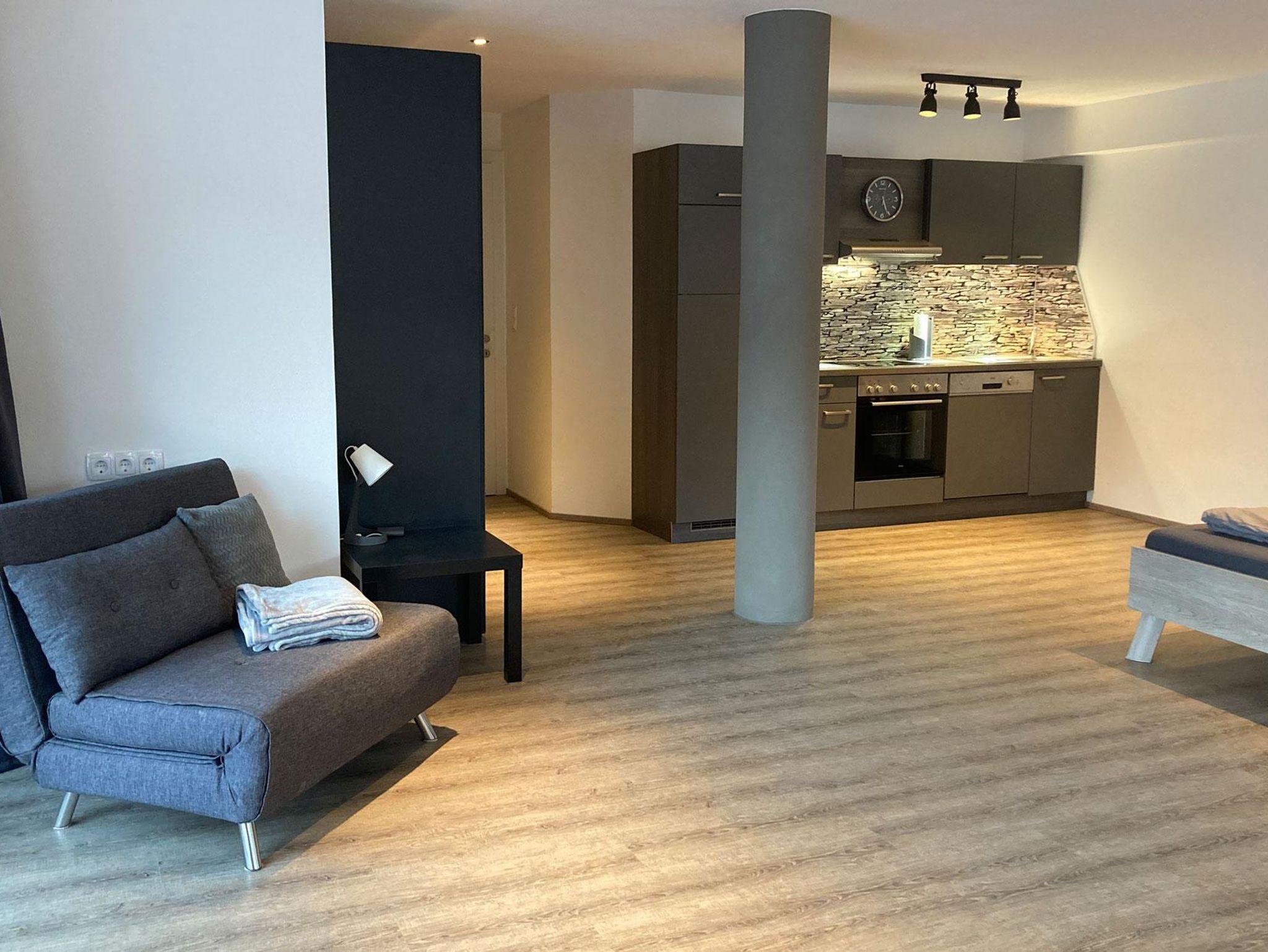 Dieses 48m² große Studio-Apartment bietet Platz für bis zu 3 Personen und ist ideal für Paare oder kleine Familien. Der offene Wohn-Schlafbereich verfügt über ein komfortables Doppelbett und eine Schlafcouch. Eine voll ausgestattete Küche und ein modernes Badezimmer sorgen für höchsten Komfort. Genießen Sie entspannte Stunden auf der privaten Terrasse und erleben Sie erholsame Tage in gemütlicher Atmosphäre!