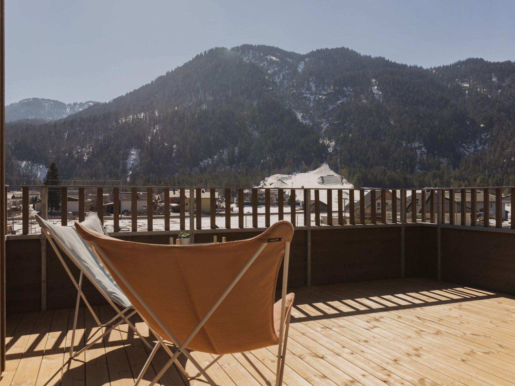 Der Wohnbereich mit Balkon bietet eine traumhafte Aussicht auf den Karwendel.