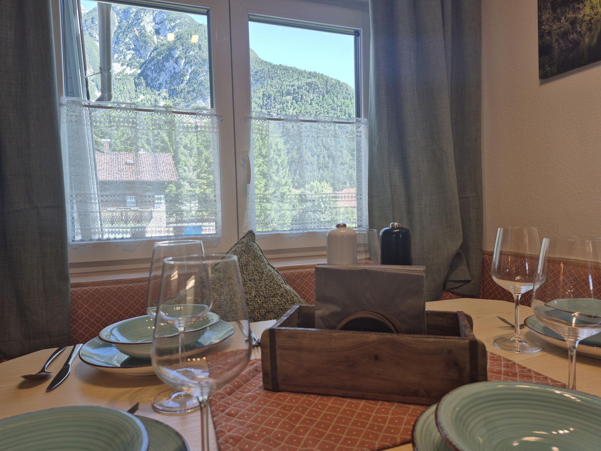 Unsere Ferienwohnung Alpenglück ist ein 56?m² großes, helles Wohlfühlzuhause mit traumhaftem Blick auf das Karwendelgebirge.