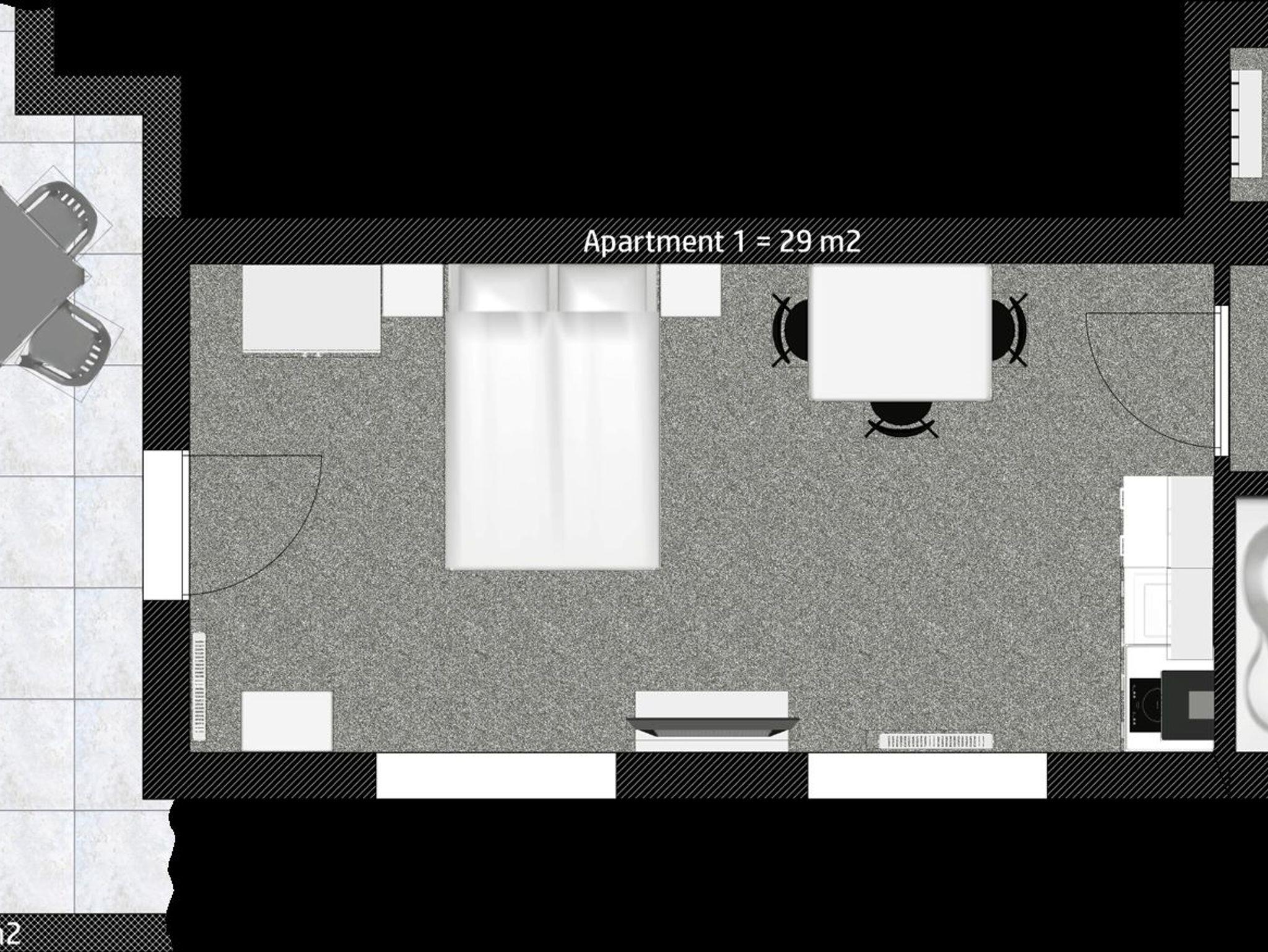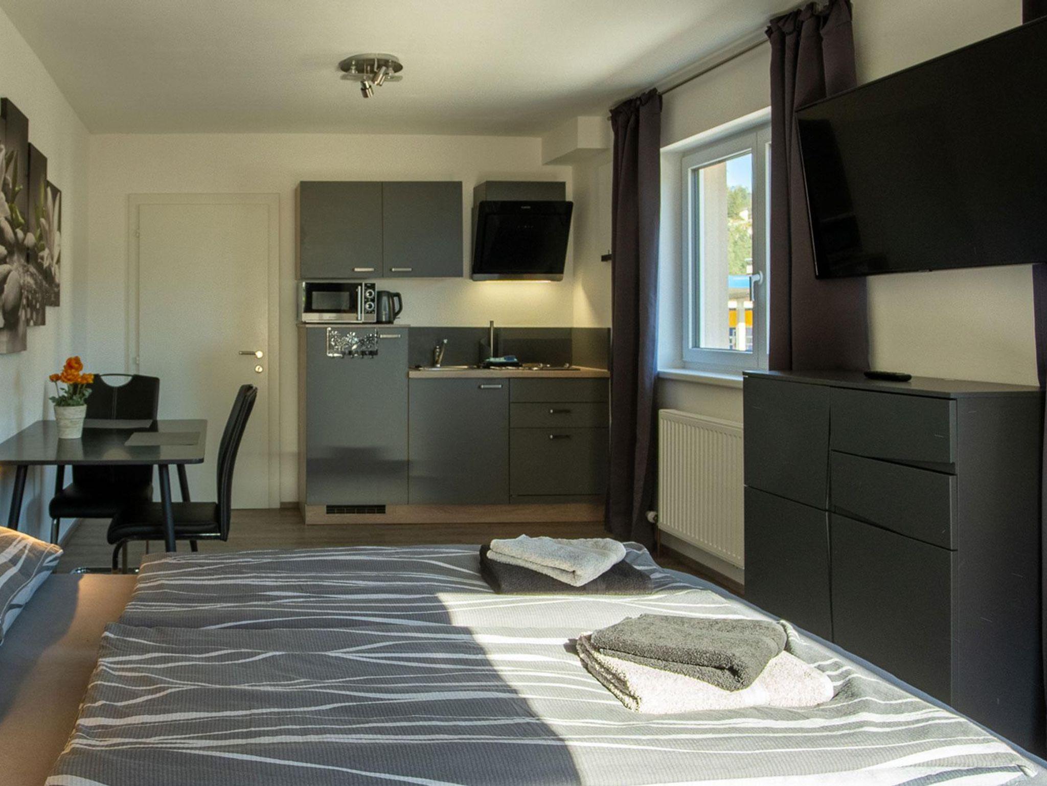 Unser 29m² großes Studio-Apartment ist perfekt für Singles oder Pärchen, die eine komfortable Auszeit genießen möchten. Die moderne Ausstattung umfasst eine voll ausgestattete Küche, ein stilvolles Badezimmer und einen offenen Wohn-Schlafbereich. Entspannen Sie auf der privaten Terrasse und genießen Sie die idyllische Umgebung. Ideal für einen erholsamen Aufenthalt in gemütlicher Atmosphäre!