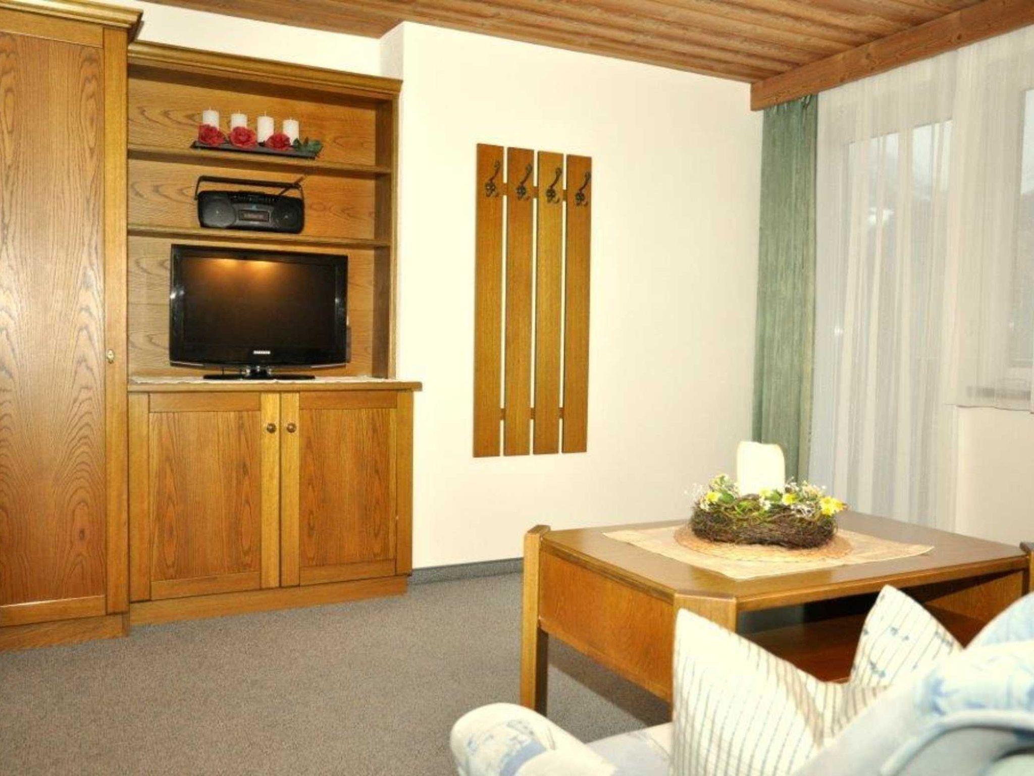 • Wohnzimmer mit TV, Couch und Esstisch