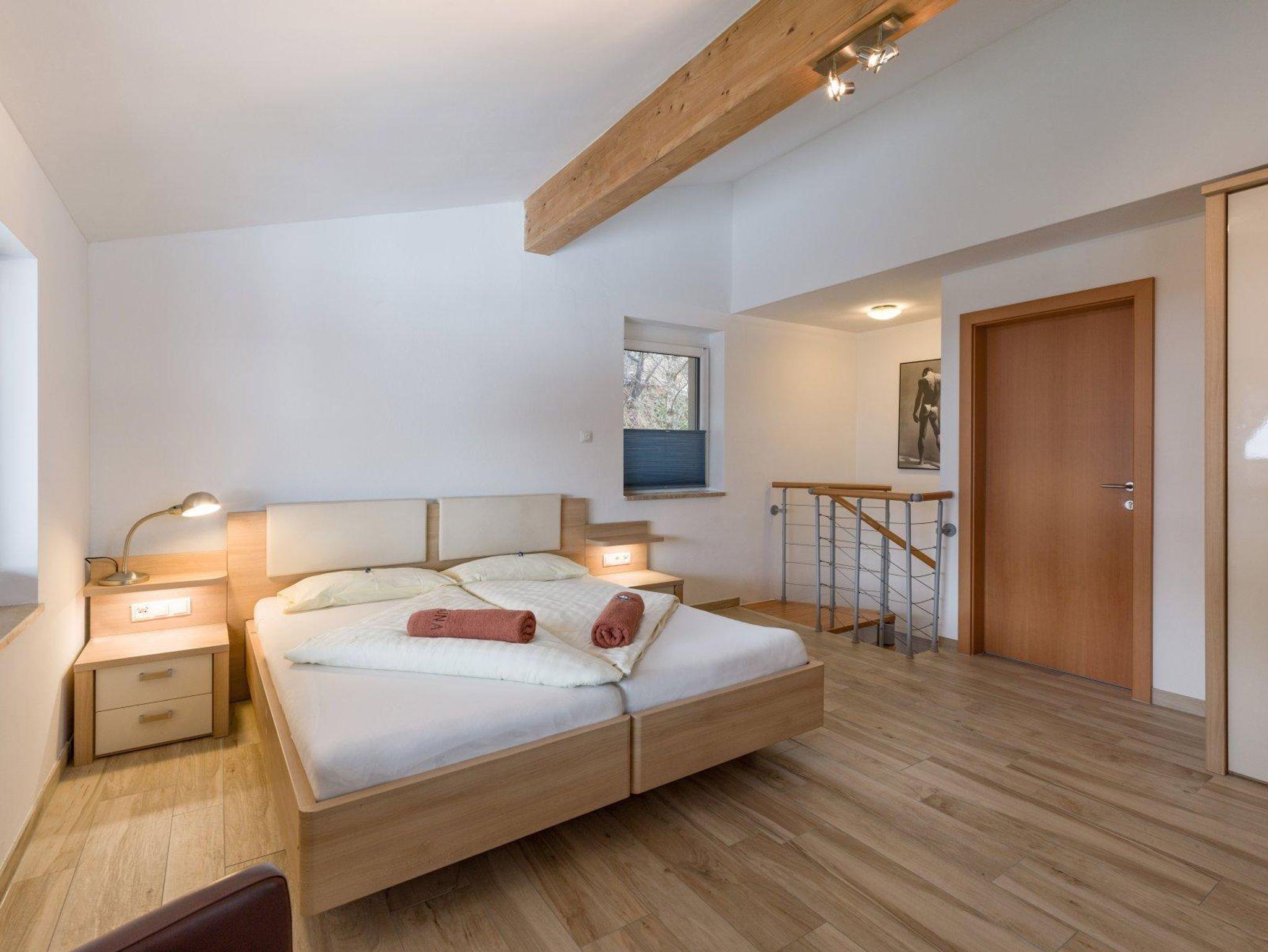 Die geräumige Maisonette-Wohnung für 5 Personen verfügt über eine große Wohnküche mit Essecke, ein Wohnzimmer mit Schlafsofa im Wintergarten, 2 Badezimmer, 2 Schlafbereiche mit Doppelbetten (verbunden durch eine Freitreppe) und ein Einzelschlafzimmer. 4 Smart-TVs und WIFI. Schlafmöglichkeit für weitere Personen auf Anfrage gegen Aufpreis.