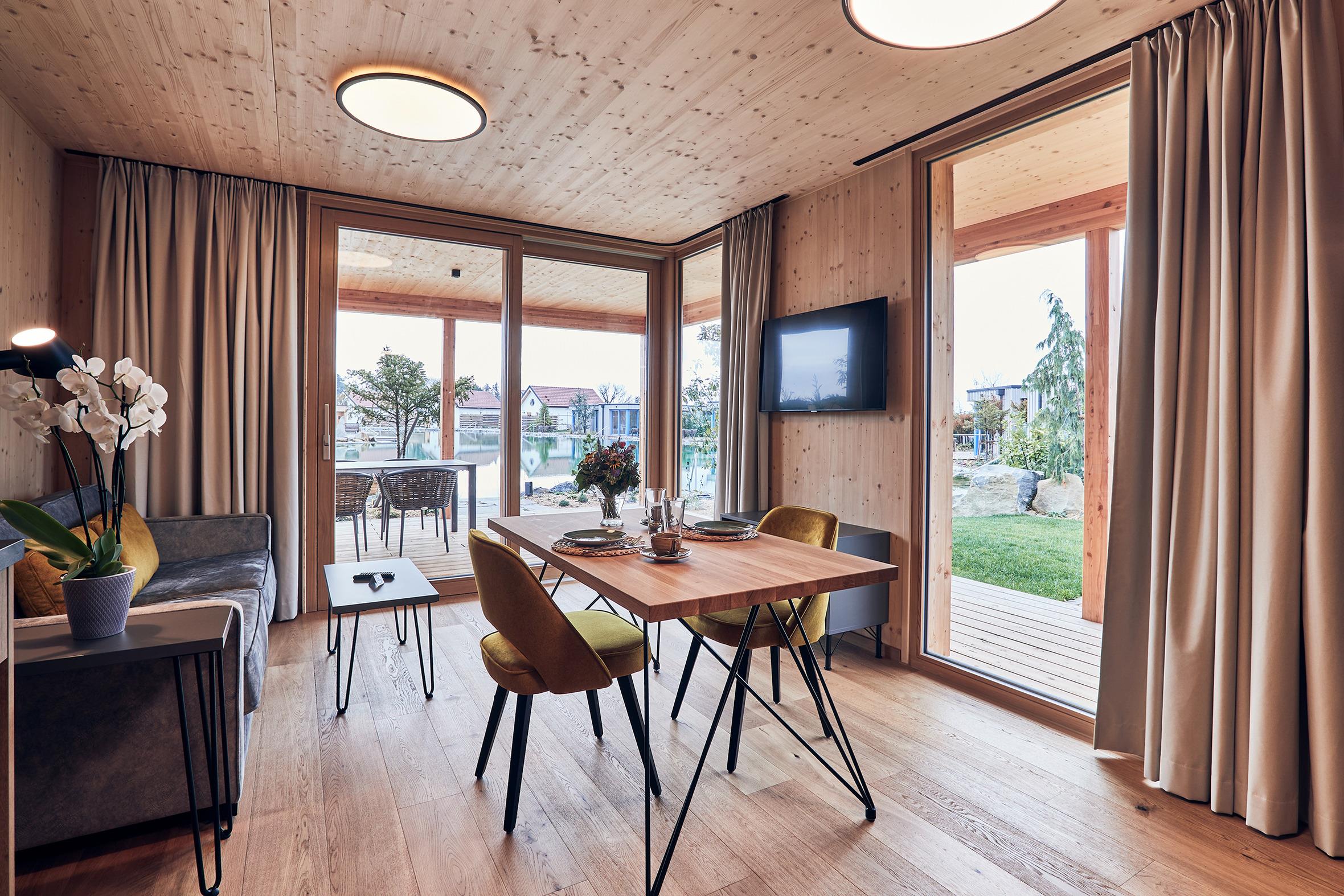 Unsere Studios bieten auf 40 m² ein Schlafzimmer, ein Badezimmer, eine Küchenzeile sowie einen Ess- und Wohnbereich mit Ausziehcouch . Ausserdem bieten sie einen 250-300 m² großen Privatgarten mit privatem Gartenseezugang sowie einer privaten Sauna oder einer heißen Badewanne unter freiem Sternenhimmel.