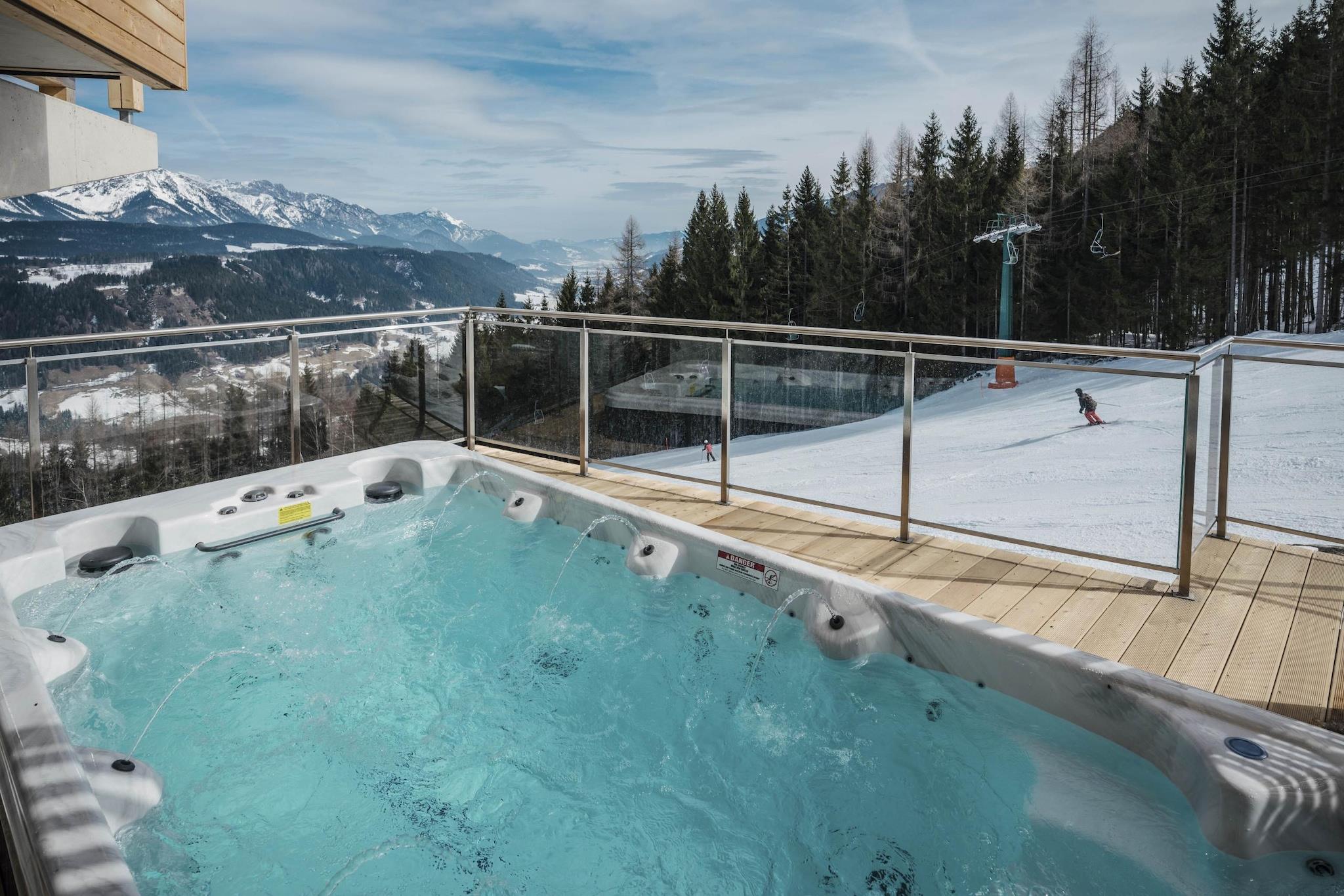 " Oplev uovertruffen luksus i denne førsteklasses hytte, der tilbyder 120 m² sofistikeret boligareal designet til op til 9 gæster. Dette moderne tilflugtssted har fire elegant indrettede soveværelser, hver med sit eget badeværelse udstyret med bruser. Ud over de fire dobbeltsenge inkluderer et soveværelse en ekstra enkeltseng for ekstra fleksibilitet. For ultimativ afslapning, slap af i den private sauna eller nyd det udendørs spabad, mens du nyder den fantastiske alpine udsigt. Det åbne køkken er fuldt udstyret til at imødekomme alle dine kulinariske behov, med en keramisk kogeplade, ovn, opvaskemaskine og et køleskab med fryser. Vigtige redskaber og apparater er til rådighed, herunder en brødrister, kedel og kaffemaskine. Et gratis startsæt, inklusive opvaskemaskiner, opvaskemiddel, en svamp, affaldsposer, en rengøringsklud og et viskestykke, vil være tilgængeligt ved din ankomst. Nyd en betagende udsigt over det ikoniske Dachstein-bjerg og Enns-dalen fra to møblerede balkoner, hvor du kan slappe af og nyde landskabet. Bekvemt beliggende direkte på skiløjpen, denne hytte tilbyder problemfri ski-in/ski-out adgang om vinteren og nem adgang til vandrestier om sommeren. Moderne faciliteter såsom gratis Wi-Fi og satellit-tv forbedrer dit ophold med både komfort og tilslutningsmuligheder. Gæsterne drager også fordel af Schladming-Dachstein-sommerkortet, der er gyldigt fra midten af maj til begyndelsen af november, og som giver yderligere frynsegoder og aktiviteter. Omfavn den ultimative alpine flugt i denne udsøgte hytte. "