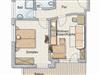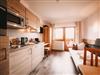 Appartement im Appartementhaus mit einem Doppelzimmer und einem Schlafsofa für zwei Personen in der Wohnküche. Der Balkon zeigt Richtung Dachsteinmassiv.