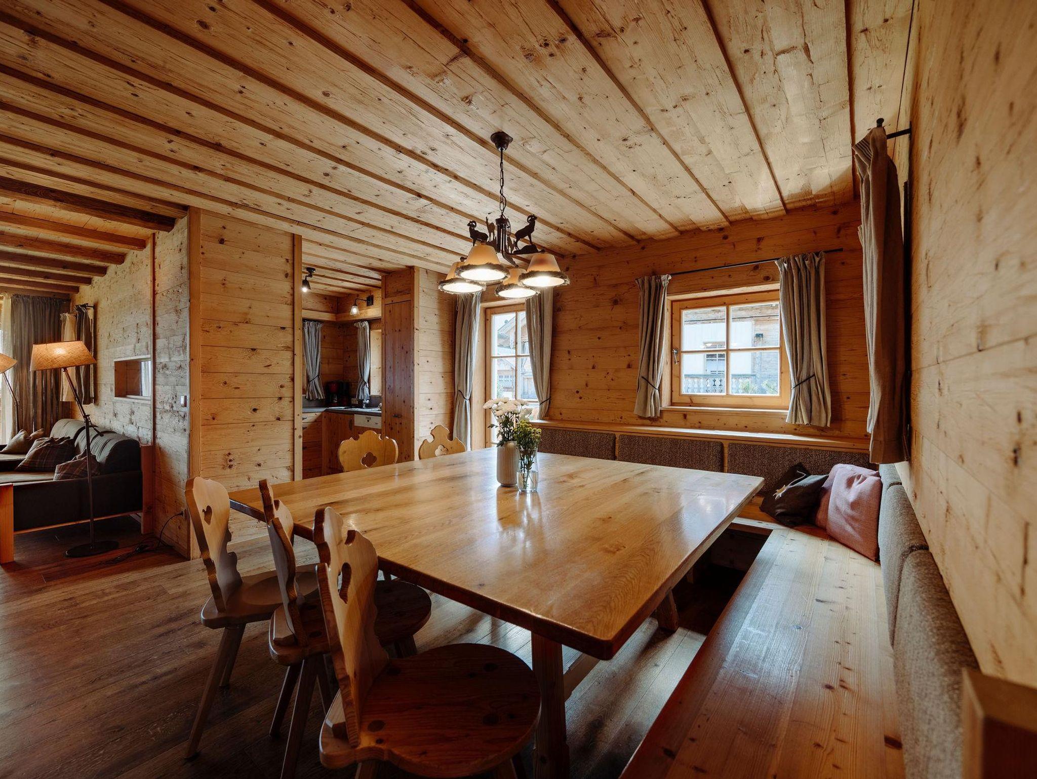 Diese Premium-Almhütte ist ausgestattet mit 2 Schlafzimmer mit Doppelbett für jeweils 2 Personen sowie ein Stockbett für jeweils 1 bis 2 Personen, 2 Schlafzimmer mit Doppelbett für jeweils 2 Personen, eine großzügig eingerichtete Küche, Wohnbereich mit Kaminofen und Panoramafronten, Flat-Screen-TV, 4 Bäder mit Dusche/WC, geräumiger Saunabereich mit Wellnessliegen und Dachsteinblick, Vorratskammer, Wanderschuh- und Schischuhtrockner imVorraum, Terrasse mit großem Tisch und Sitzgelegenheiten, eigener Wellness Pot vor dem Haus.