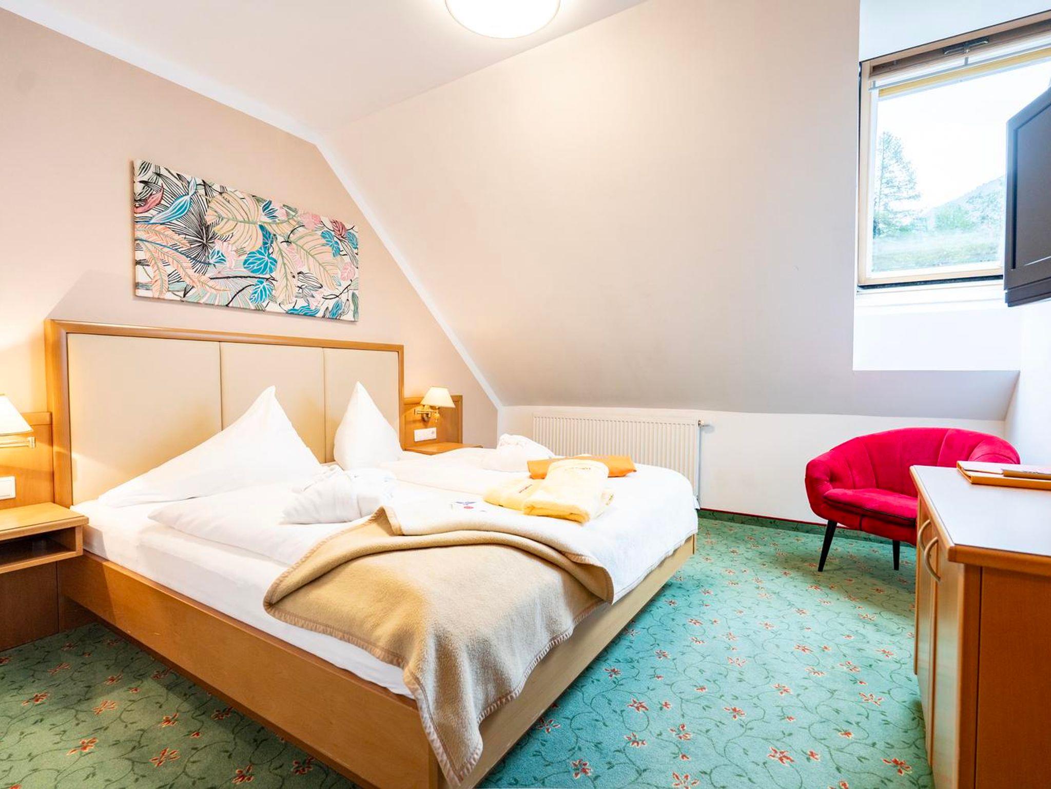 Das Standardzimmer Steirische Klassik im Landauerhof Schladming vereint steirische Klassik, Gemütlichkeit und modernen Komfort. Auf 28–32 m² bietet das liebevoll gestaltete Doppelzimmer im steirischen Stil Platz für 2–3 Personen. Warme Farben, natürliche Materialien und stilvolle Details sorgen für ein behagliches Wohngefühl. Ideal für Paare oder kleine Familien, die Entspannung und alpine Atmosphäre suchen. Genießen Sie Ihren Urlaub in Schladming mit herzlicher Gastfreundschaft und traumhaftem Blick auf die Dachstein-Tauern-Region.