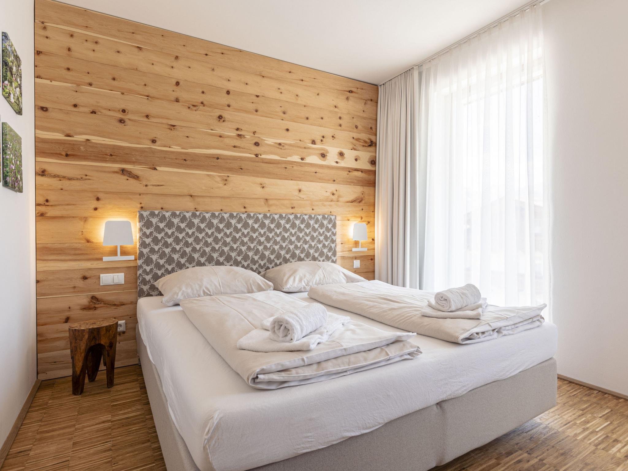 "Superior 2 Schlafzimmer&Saunabereich", 3-room apartment 90 m2. Bright, modern and tasteful furnishings: living/sleeping room with 1 double sofabed, dining nook and satellite TV (flat screen). 2 double bedrooms. Open kitchen (oven, dishwasher, 4 ceramic glass hob hotplates, toaster, kettle, microwave, electric coffee machine). Bath/WC, sep. WC. Terrace 35 m2. Terrace furniture. Beautiful view of the mountains. Facilities: hair dryer. Internet (WiFi, free). Please note: non-smokers only.