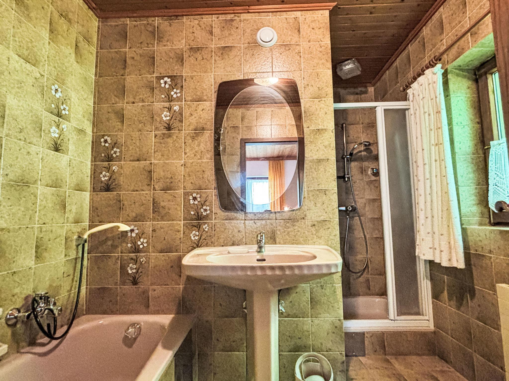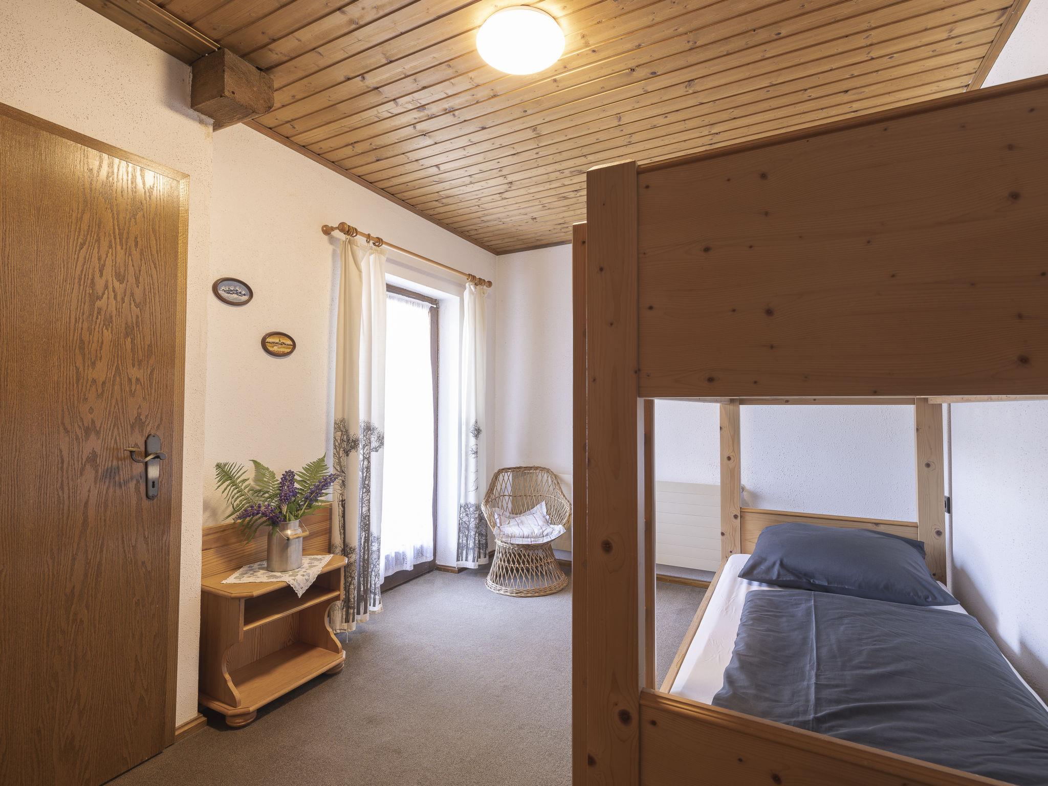 "Appartement 2", 3-room apartment 55 m2 on 1st floor. Practical furnishings: living room with Scandinavian wood stove, satellite TV and international TV channels (flat screen). Exit to the balcony. 1 double bedroom with bath/shower/WC. 1 room with 1 x 2 bunk beds. Exit to the balcony. Kitchen (oven, dishwasher, toaster, kettle, microwave, electric coffee machine) with dining nook. Shower/WC. Oil heating. Parquet floors. Balcony. Balcony furniture. Very beautiful panoramic view of the mountains and the valley. Facilities: Internet (WiFi, free). Please note: non-smokers only. Maximum 2 pets/ dogs allowed. Nota: l'appartamento non è separato dalle scale pubbliche.