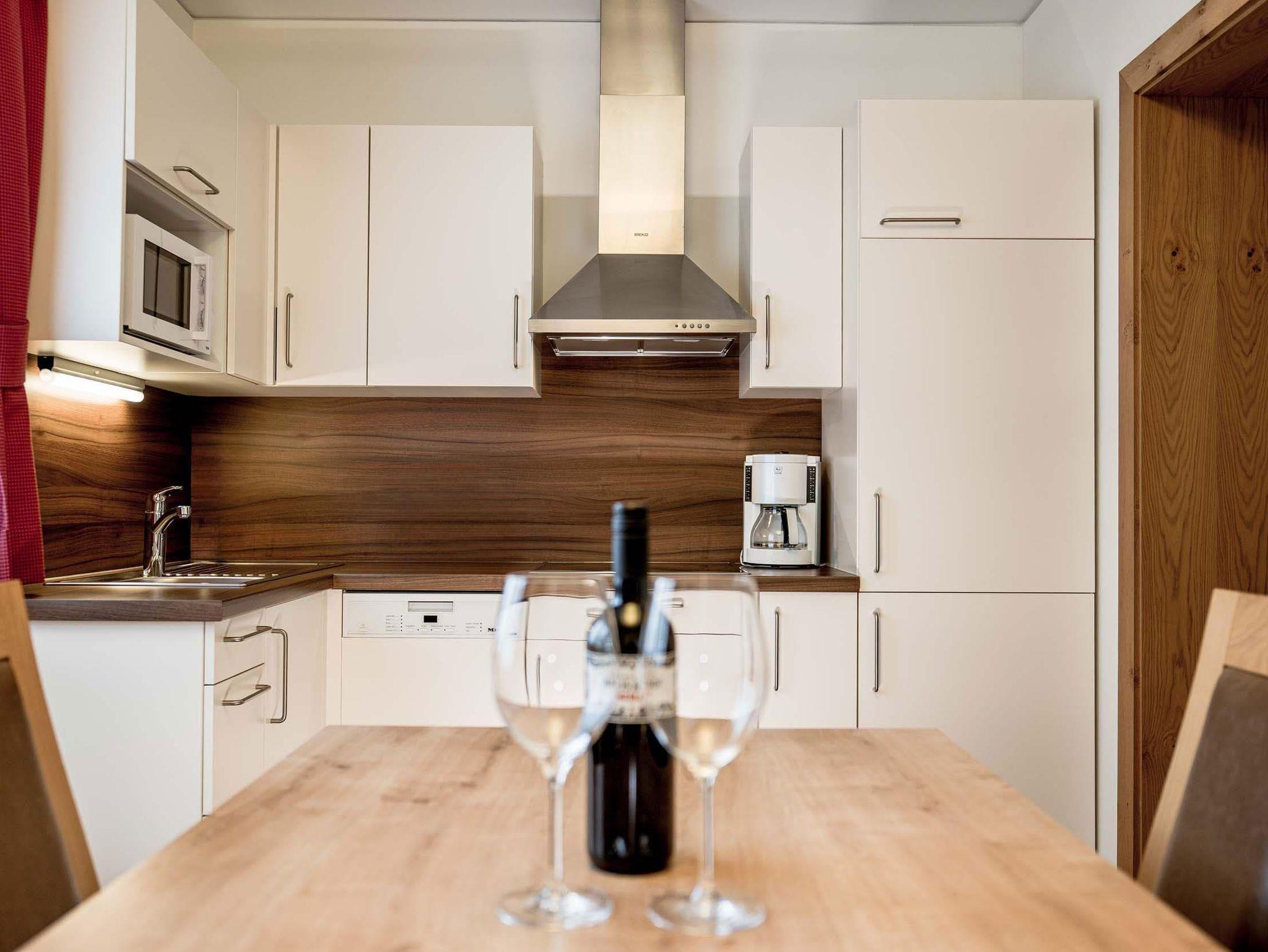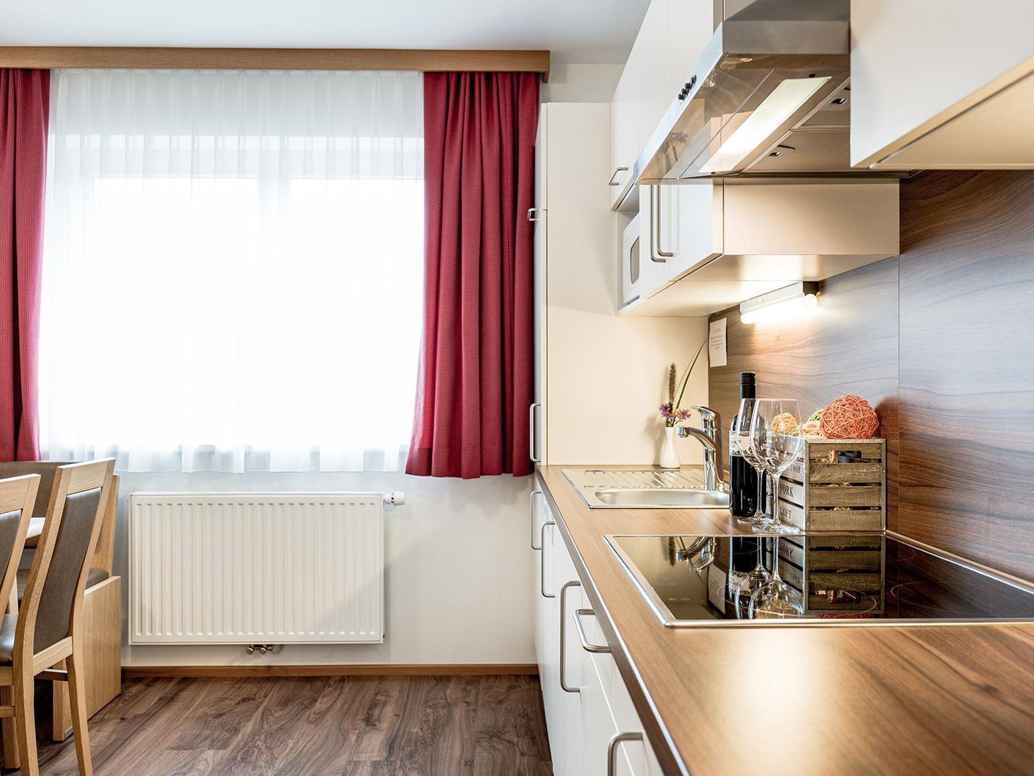 Die vollausgestatteten Appartements und Zimmer sind großzügig gestaltet, warme Farben und viel Holz sorgen für ein angenehmes Wohngefühl. Eine wohltuende Auszeit und Ruhe genießt du im kleinen, aber feinen Wellnessbereich mit Finnischer Sauna, Kräutersauna und Infrarotkabine. Weiteren Komfort bietet die Parkgarage (reservierungs- und kostenpflichtig) mit direktem Zugang zum Appartementgebäude und zum Aufzug sowie ein Ski- und Schuhraum mit beheizten und verschließbaren Skisafes.