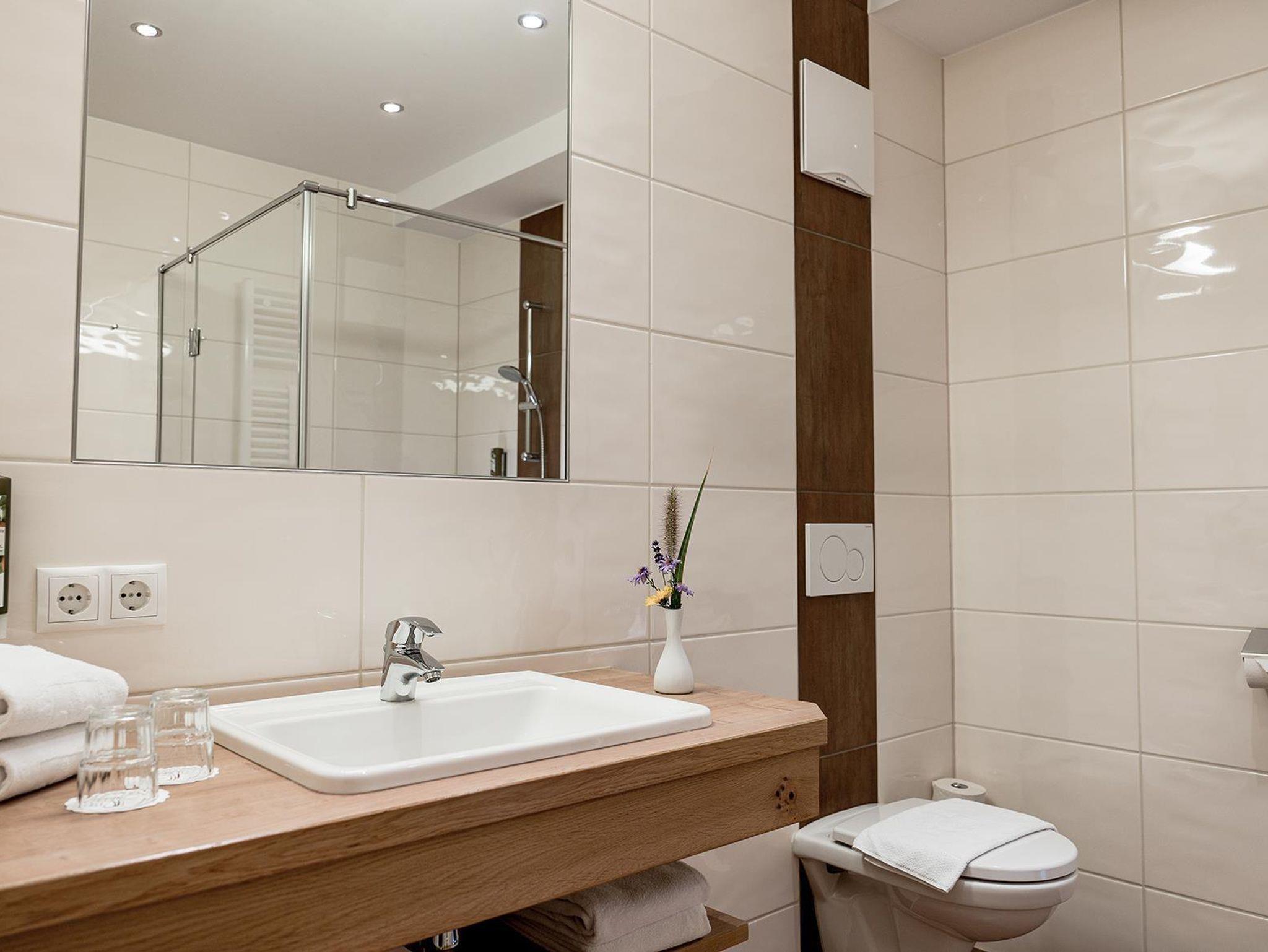 Appartement für 2-4 Personen mit ca. 40 m² Wohnfläche. Das Appartement Komfort verfügt über 1 Schlafzimmer mit einem Doppelbett und einer Doppel-Schlafcouch für 2 Personen, 1 Badezimmer mit Dusche und WC, Wohnküche mit Essbereich und vollausgestatteter Küche mit Kühlschrank/Gefrierfach, Mikrowelle, Ceran-Kochfeld, Kaffeemaschine, Geschirrspüler, Kochutensilien und Geschirr. Alle Appartements und Zimmer sind mit Telefon, TV, Safe, Föhn und WLAN Internet ausgestattet.