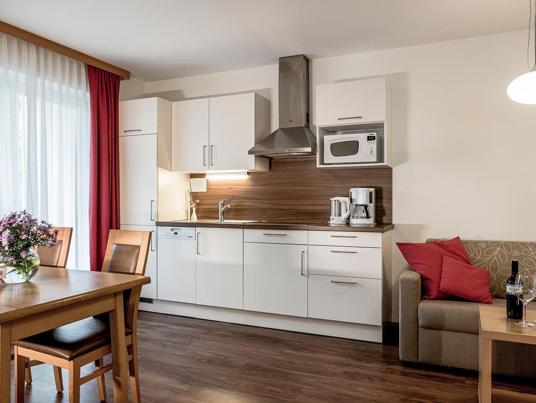 Die vollausgestatteten Appartements und Zimmer sind großzügig gestaltet, warme Farben und viel Holz sorgen für ein angenehmes Wohngefühl. Eine wohltuende Auszeit und Ruhe genießt du im kleinen, aber feinen Wellnessbereich mit Finnischer Sauna, Kräutersauna und Infrarotkabine. Weiteren Komfort bietet die Parkgarage (reservierungs- und kostenpflichtig) mit direktem Zugang zum Appartementgebäude und zum Aufzug sowie ein Ski- und Schuhraum mit beheizten und verschließbaren Skisafes.