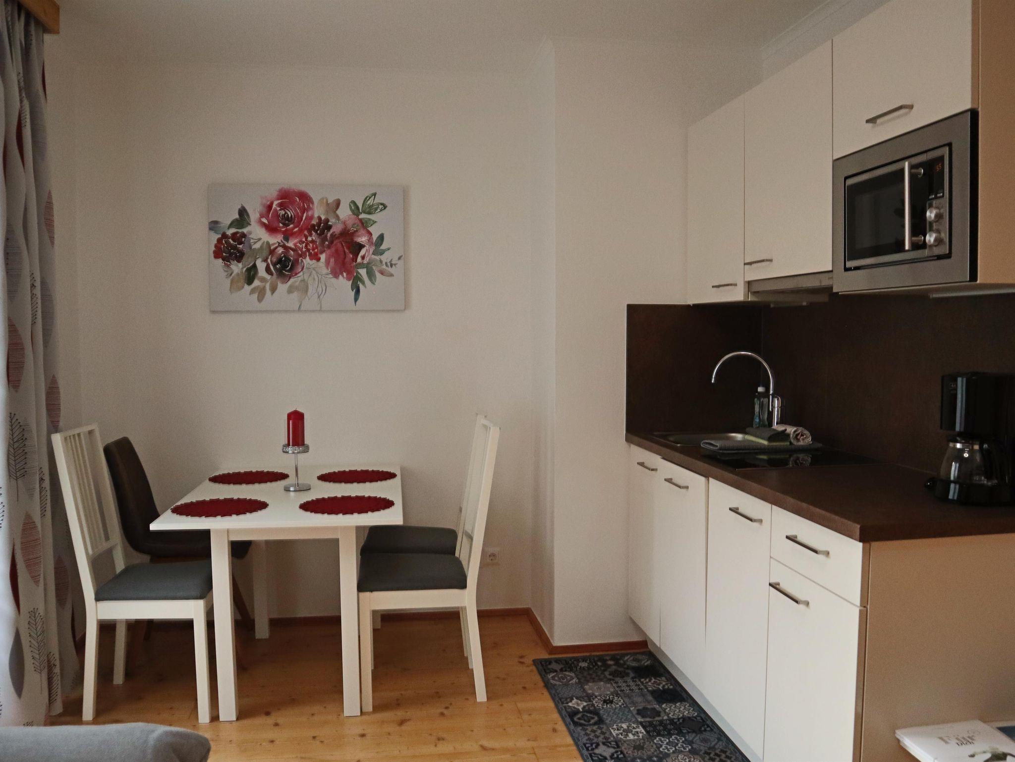 Das Appartement Arnika bietet Platz für 1 bis 4 Personen. Es verfügt über 1 Schlafzimmer mit einem Doppelbett und einem Kleiderschrank. In der Wohnküche befinden sich