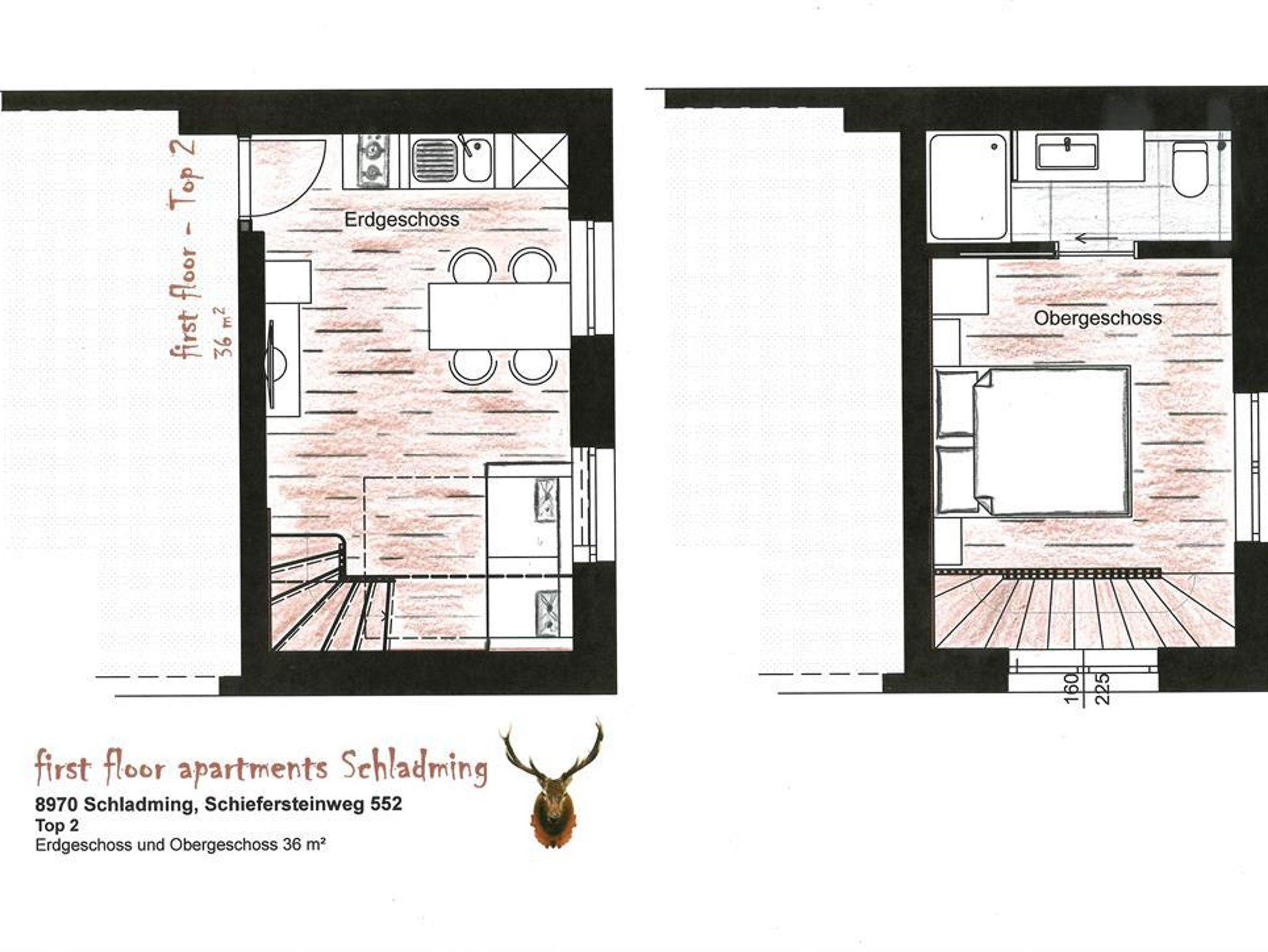 450 Meter zum Planet Planai Stadion, dem Haupteinstieg der 4-Berge Skischaukel, nur 500 Meter in das pulsierende Stadtzentrum von Schladming mit seinen zahlreichen Restaurants, Bars und Shops sowie nahe unzähliger Freizeitaktivitäten, eröffnet das Wohn- & Appartementhaus „Free Feel“ seine Pforten für unsere Gäste. Durch die Toplage, die traumhafte Aussicht auf unsere Berge und überdies dem modernem Interieur gepaart mit Komfort und Gemütlichkeit, garantieren die Appartements im Haus „Free Feel“ einen Wohlfühlurlaub im Sommer wie im Winter. Heimische und hochwertige Materialien vermitteln eine typisch heimelige Gemütlichkeit mit modernem-alpinen Touch. Geboten werden 2 separate Appartements, die insgesamt Platz für 12 Personen bieten. Top 1 bietet auf einer Wohnfläche von 75m² Platz für 6-8 Personen und Top 2 auf 2 Etagen 36m² Platz für 2-4 Personen. In beiden Appartements erwarten Sie Annehmlichkeiten wie großzügige Wohnräume, separate Schlafzimmer, freies Wlan sowie Kabel-TV. Das Top 1 bietet außerdem einen Balkon und kleinen Garten. Wünschen Sie also einen Wohlfühlurlaub in bester Lage, noch dazu autofrei, dann sind die Appartements Free Feel das richtige Urlaubsdomizil für Sie und Ihre Familie / Freunde.