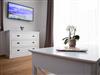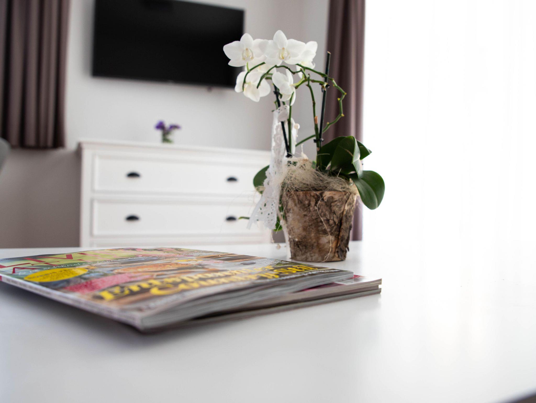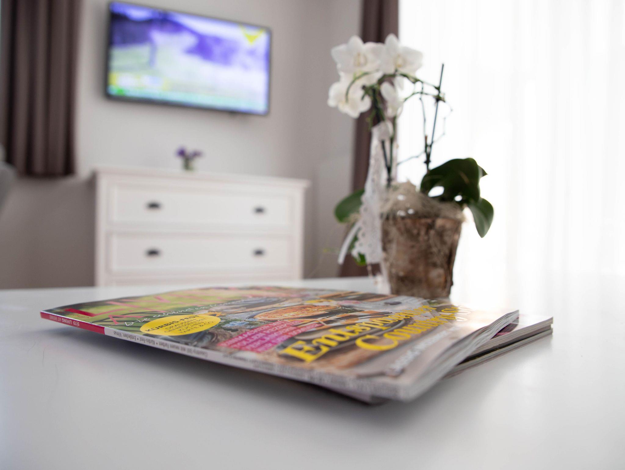 Im Ess- und Wohnraum sowie in allen Schlafzimmern sind TV mit Kabelanschluss.