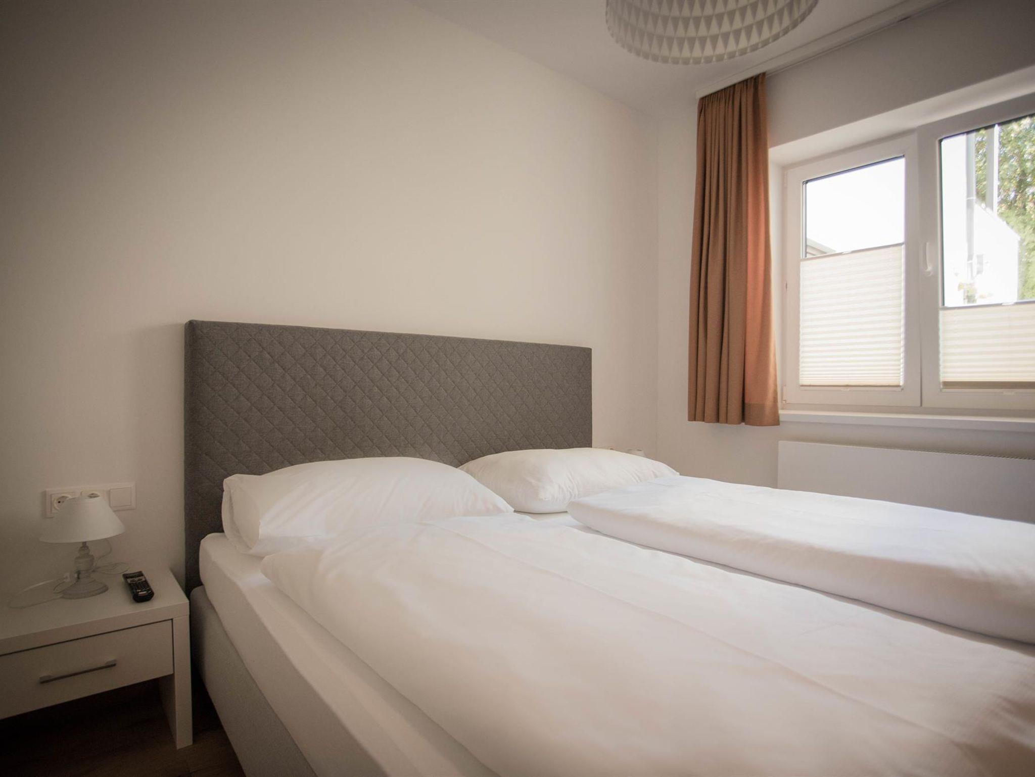 Das App. hat 2 getrennte Schlafzimmer, beide mit Boxspringbetten, 2 Badezimmer mit Dusche (eines davon behindertengerecht), 2 WC (eines davon separat) und einen gemütlicher Wohn- und Essbereich mit offener Küche.
