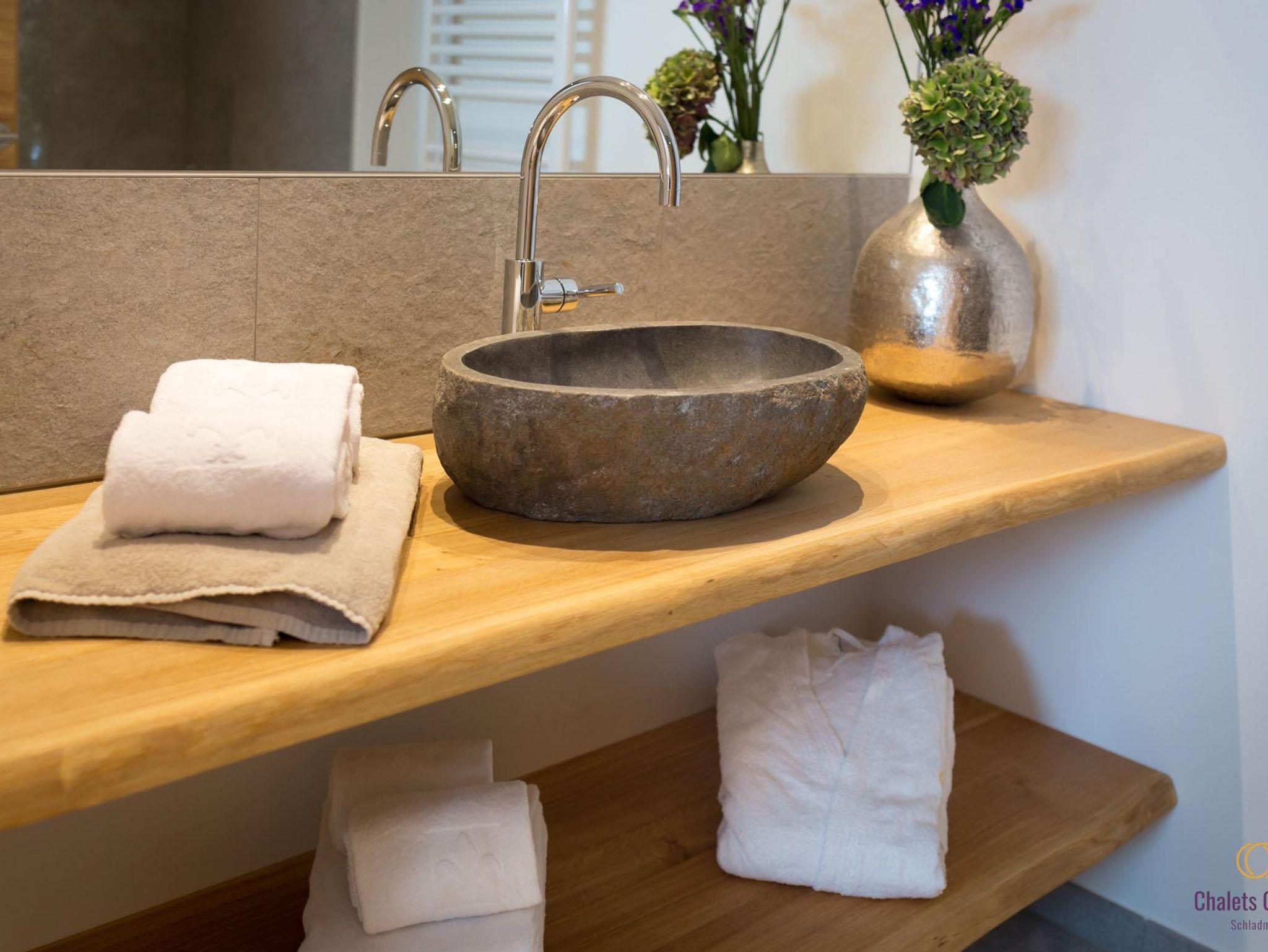 • 1 Bad mit Natursteinbecken undRegendusche
