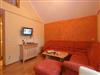 Es besteht aus einem Vorraum, einem Wohnraum mit einer Ausziehcouch, drei Schlafräumen, einer Küche und zwei Dusch/WC-Einheiten.