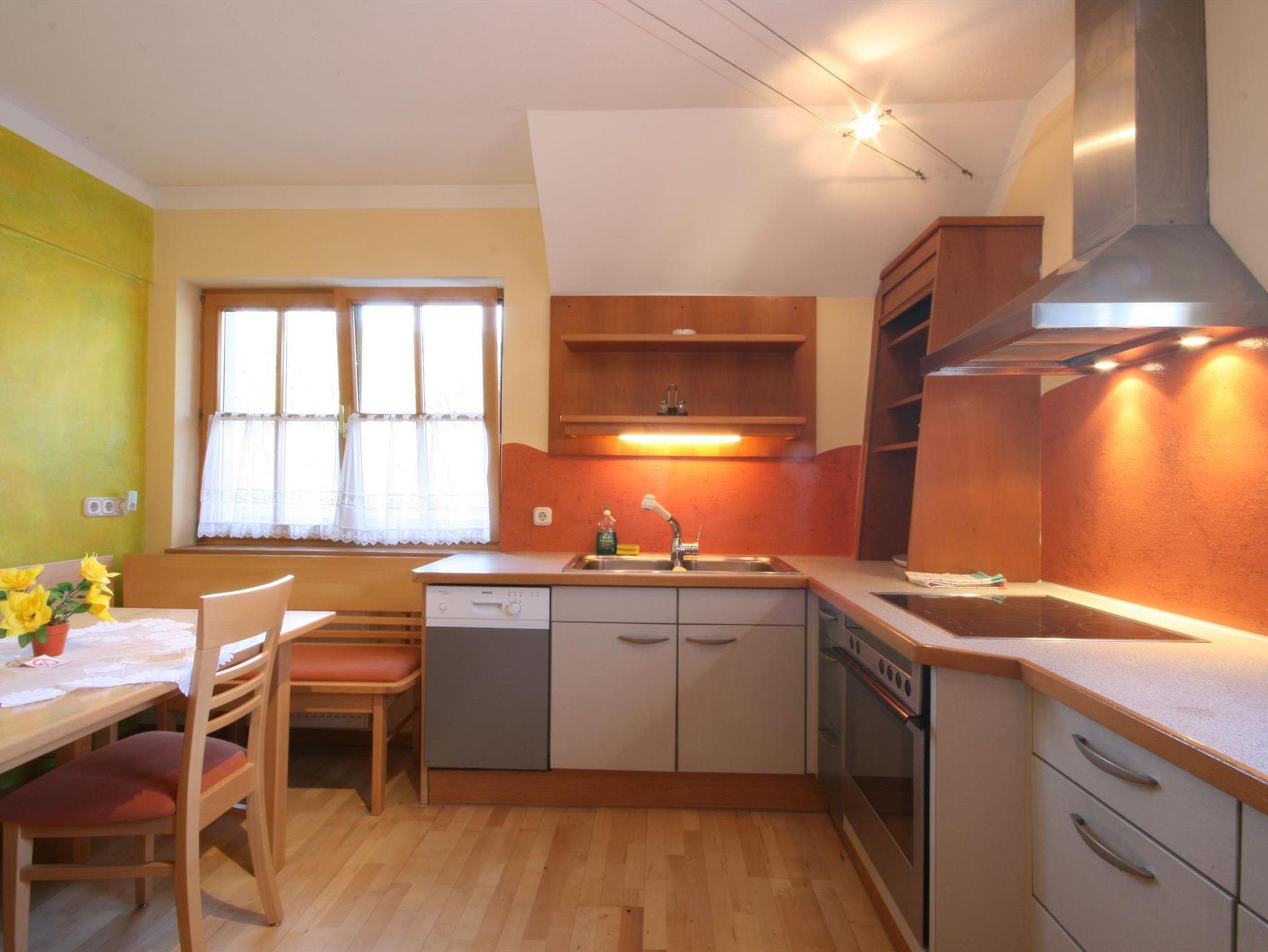 Die Küche ist voll ausgestattet mit E-Herd, Mikrowelle, Kaffeemaschine, Toaster, Wasserkocher sowie Koch- und Tischgeschirr.