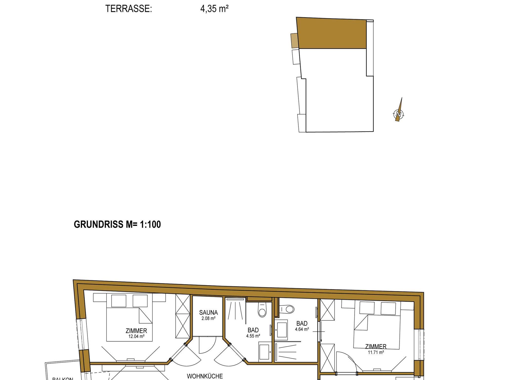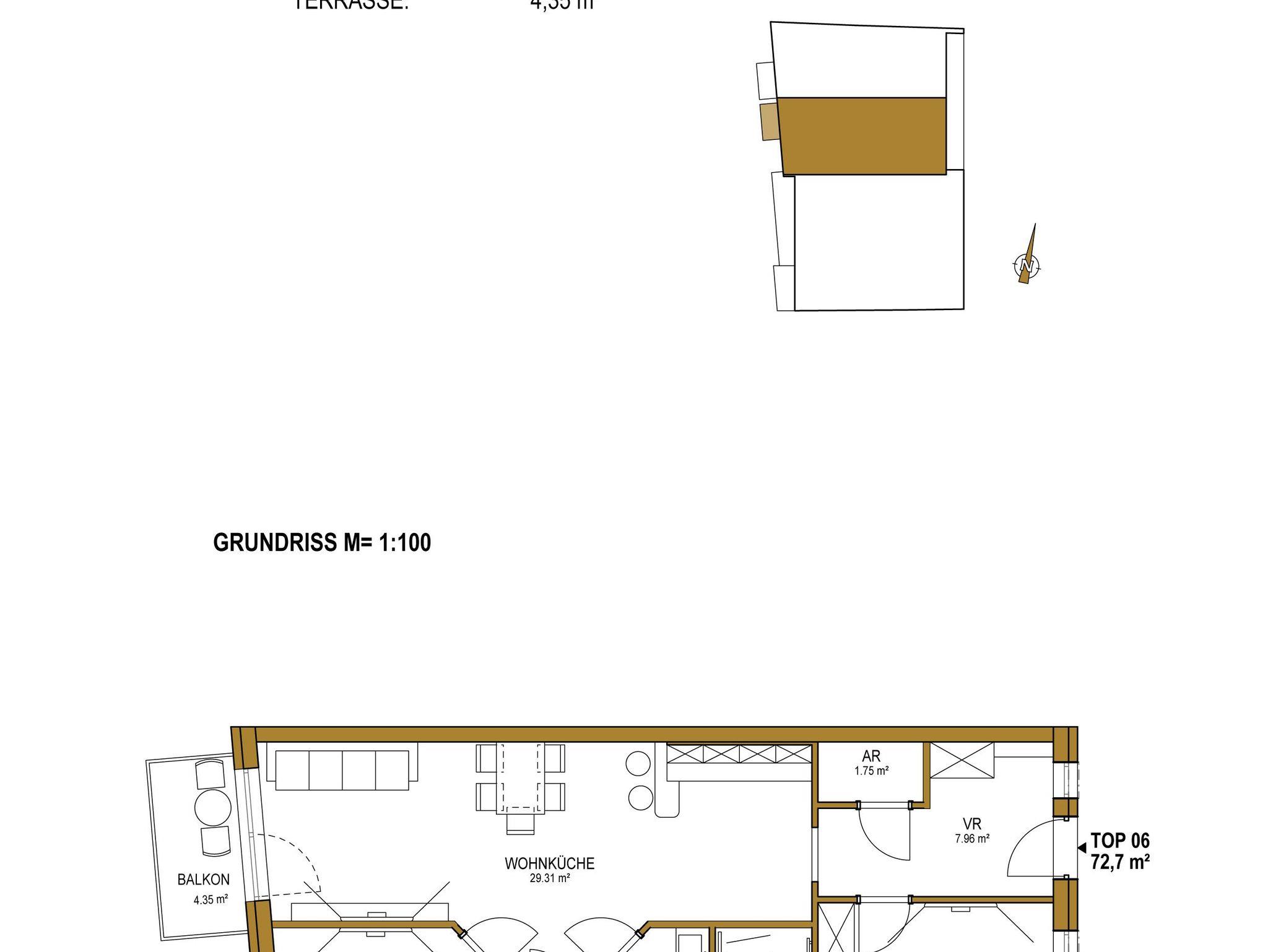 - 30 m² Terrasse oder 4,35 m² Balkon mit Möbel