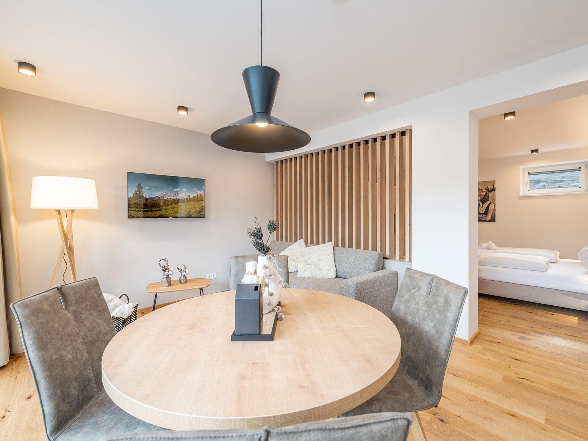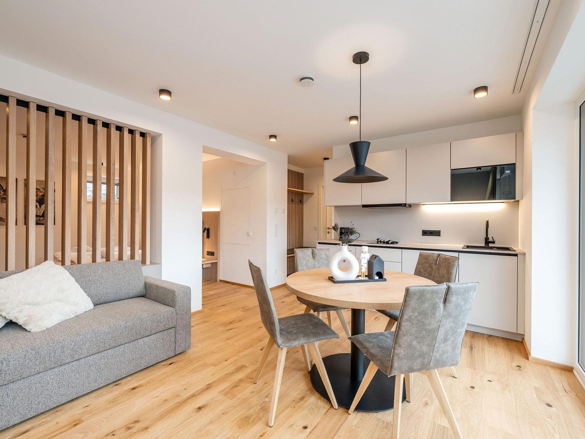 Ein Skiraum mit Schischuhheizung im Haus sorgt für zusätzlichen Komfort im Winter. Die Schlafsofas befinden sich – sofern vorhanden – stets im Wohn- und Essbereich, wodurch die Apartments flexibel für Paare, Familien und Freunde nutzbar sind.