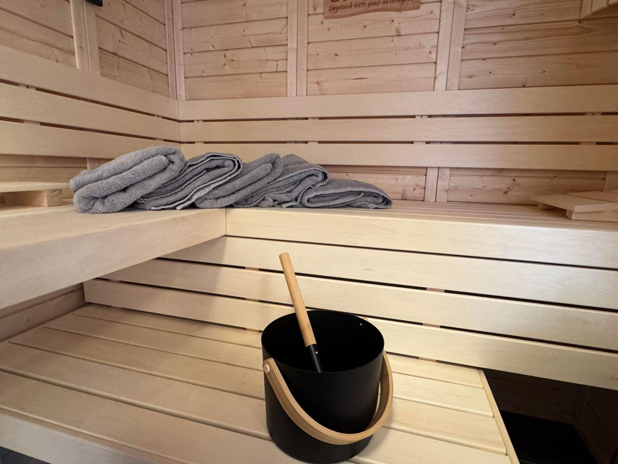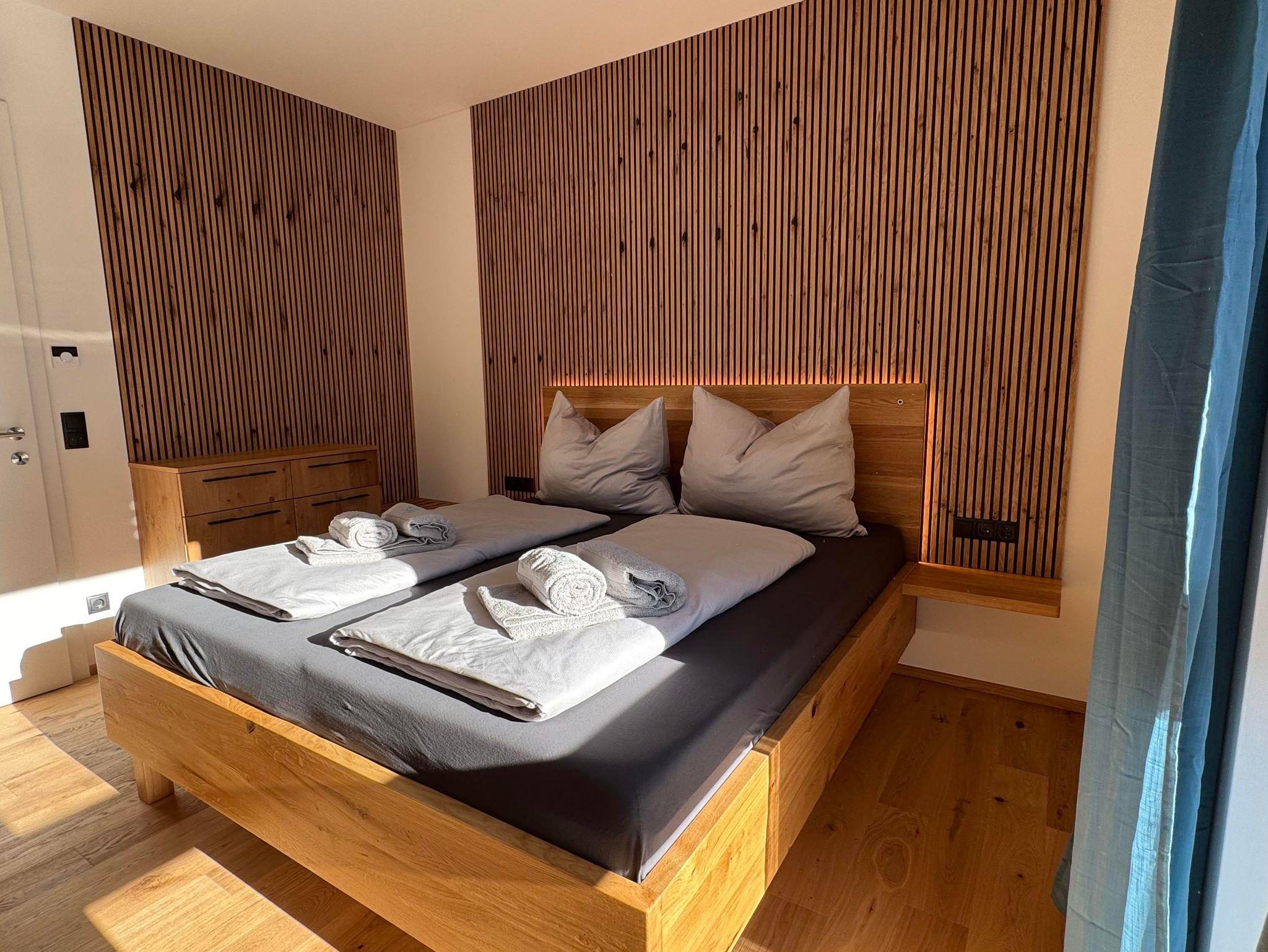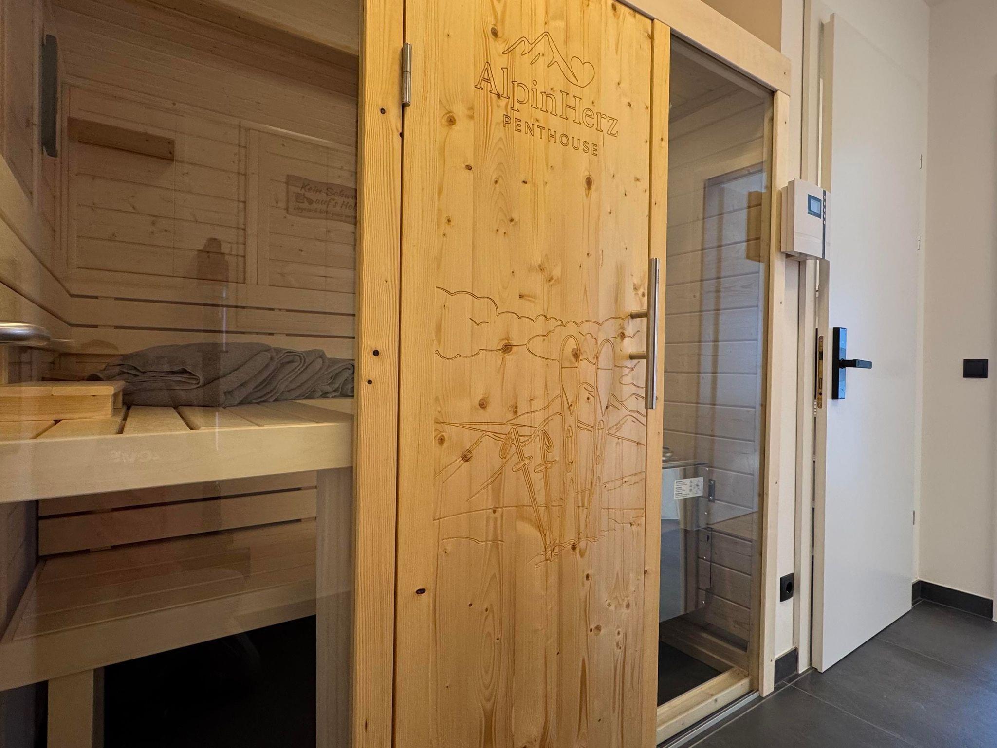2 getrennte Schlafzimmer mit King-Size Boxspringbetten, großzügige Küche und eigener Sauna.