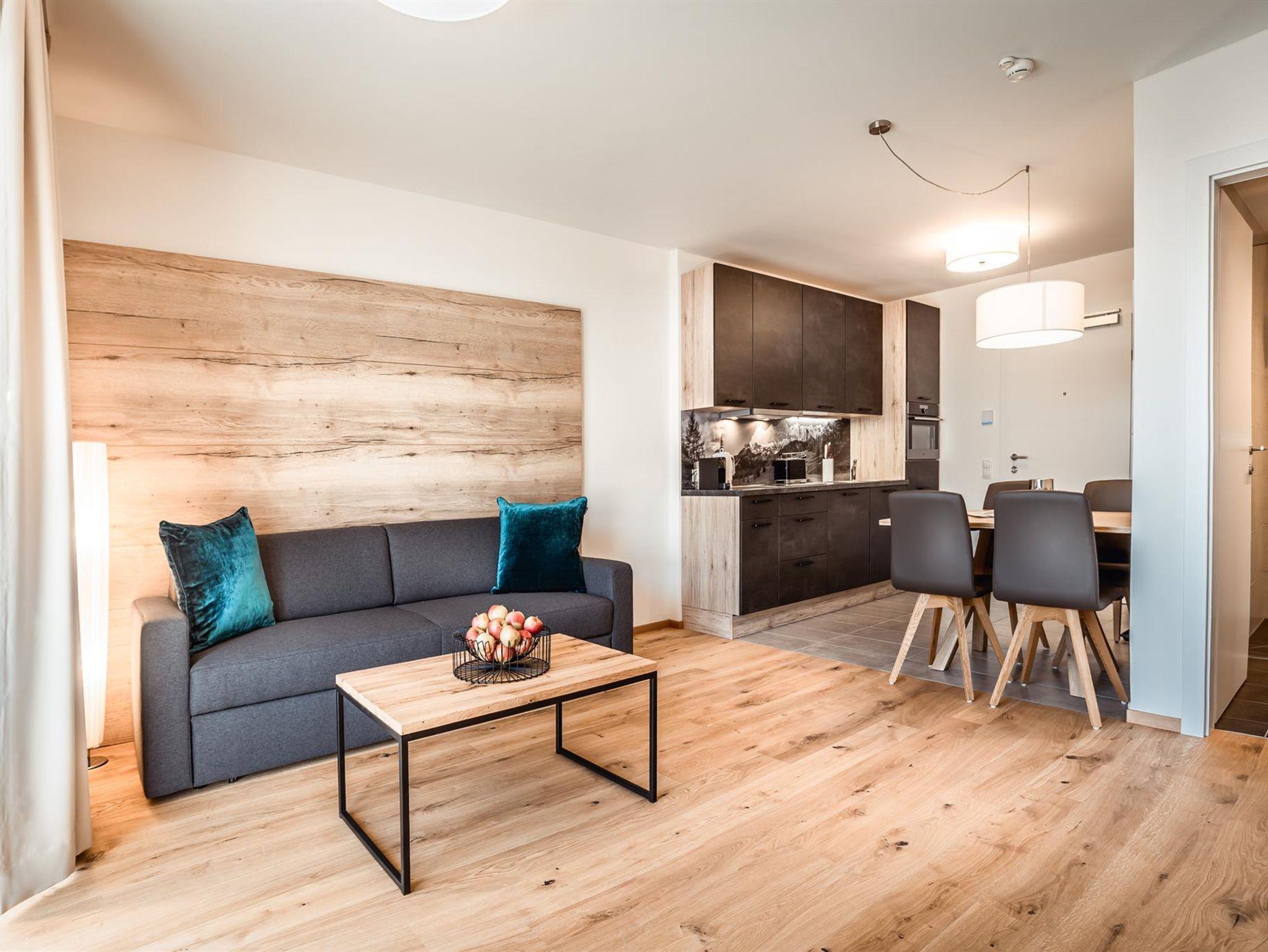 Eben alles was man so braucht. By the way: Das Auto kannst du in der Tiefgarage lassen. Servus im Gustav – 8 Appartements von Smart bis Sky – außerdem mit dabei: Private Sauna im Appartement, eigene Terrasse oder Balkon Top 8 hat keine Balkon, komplett ausgestattete Küchen mit allem PiPaPo, 1-2 Schlafzimmer und Bäder sowie eine Aussicht nach Westen auf die Hochwurzen und das eine oder andere Chi-Chi.