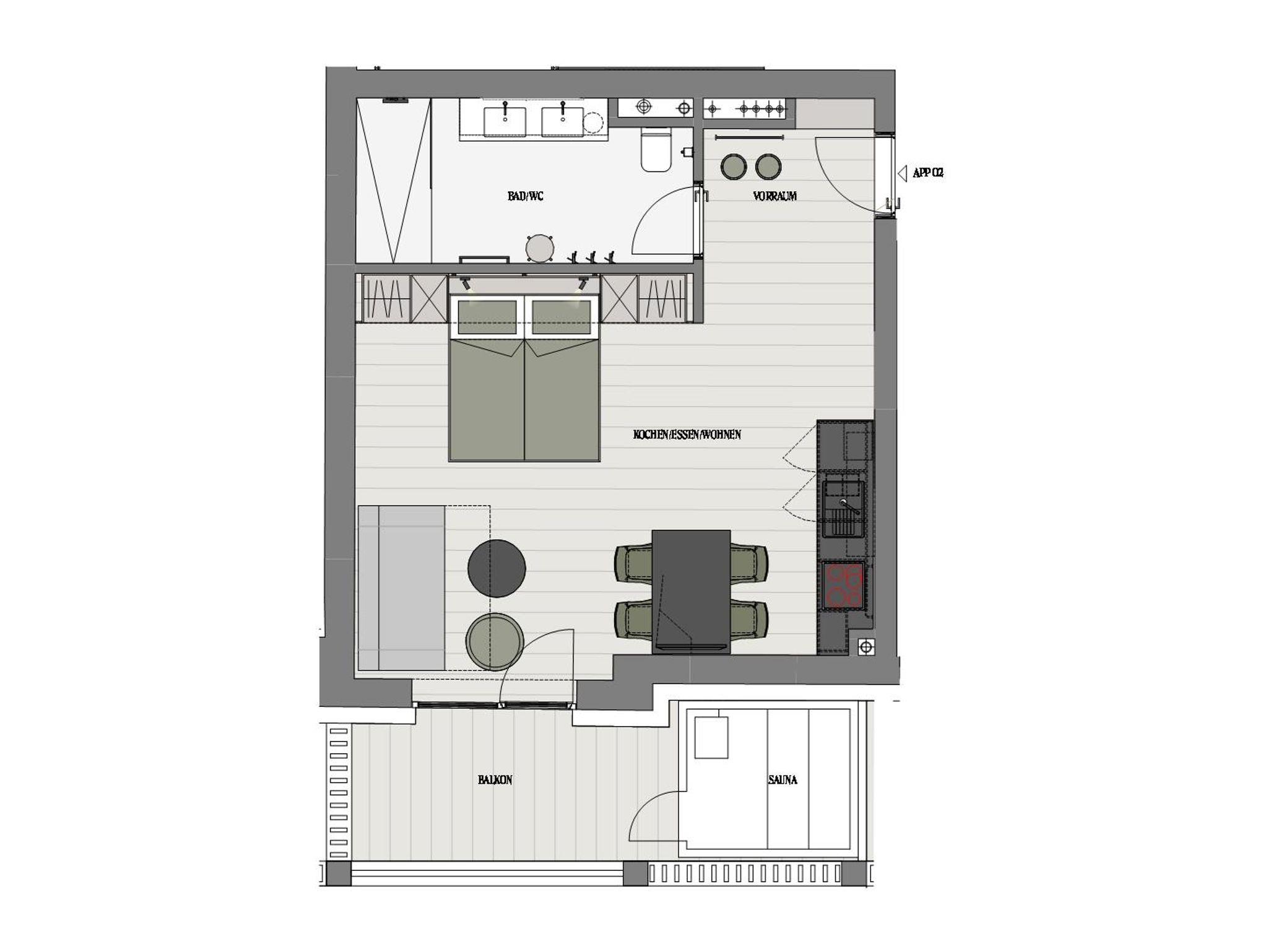 Unser Comfort Studio ist ein echter Geheimtipp für smarte Urlauber. Das liegt nicht nur am gemütlichen Wohn- und Schlafbereich mit Doppelbett und allen Annehmlichkeiten von Flat- Screen bis WiFi, sondern auch an der geräumigen Loggia mit Sauna, auf der man zum einen gut sitzen, zum anderen aber auch echt gut schwitzen kann.