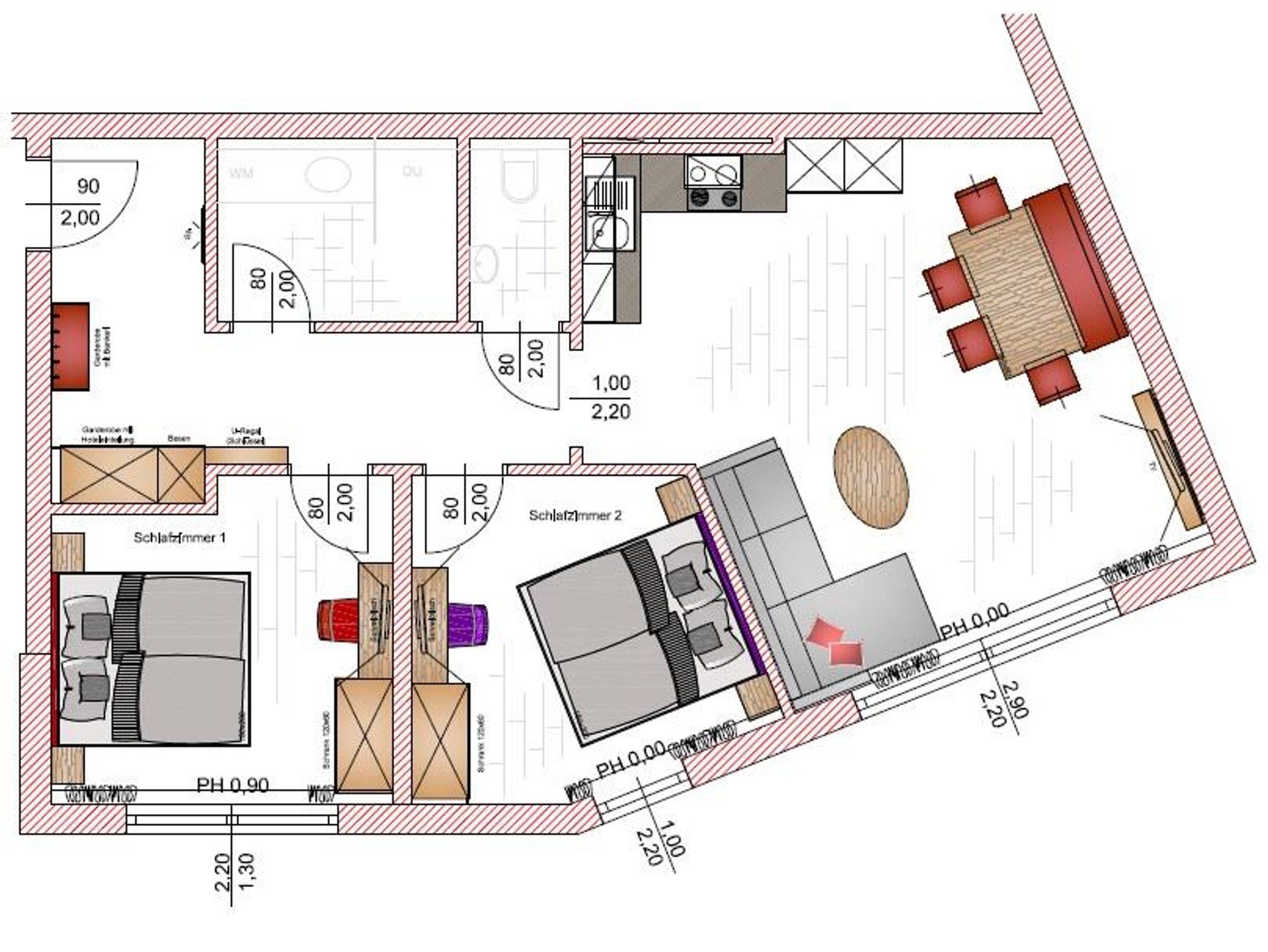 Top 5 - Platz für 4 Personen, großzügiger Wohnraum mit voll ausgestatteter Küche, Essbereich, gemütliches Sofa mit TV, zwei separate Schlafzimmer mit Doppelbett, ein Badezimmer mit Regendusche sowie eine separate Toilette. Auf der Süd-West Sonnenterrasse haben Sie die Schladminger Berge vor Augen – die Skiberge Planai und Hochwurzen sind vom Appartement aus bestens zu sehen. Außerdem kann man den Abend an diesem Plätzchen perfekt ausklingen lassen.