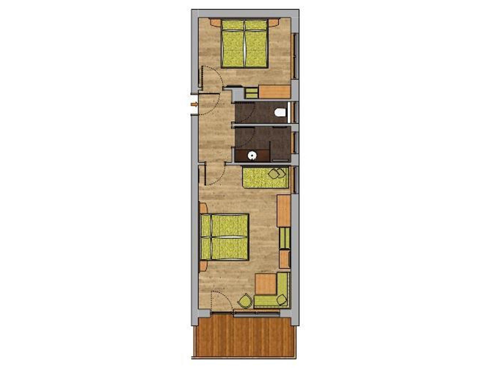 Die Familien-Suite ist 55 qm² groß, besteht aus zwei Schlafräumen. Ein Schlafraum mit King-Size-Betten (210x 200), Sitzecke, Joka-Liege und einem Doppelzimmer mit Twin-Betten, Dusche und WC räumlich getrennt, SAT-TV, Kühlschrank, WLAN und südseitiger Balkon mit Bestuhlung.