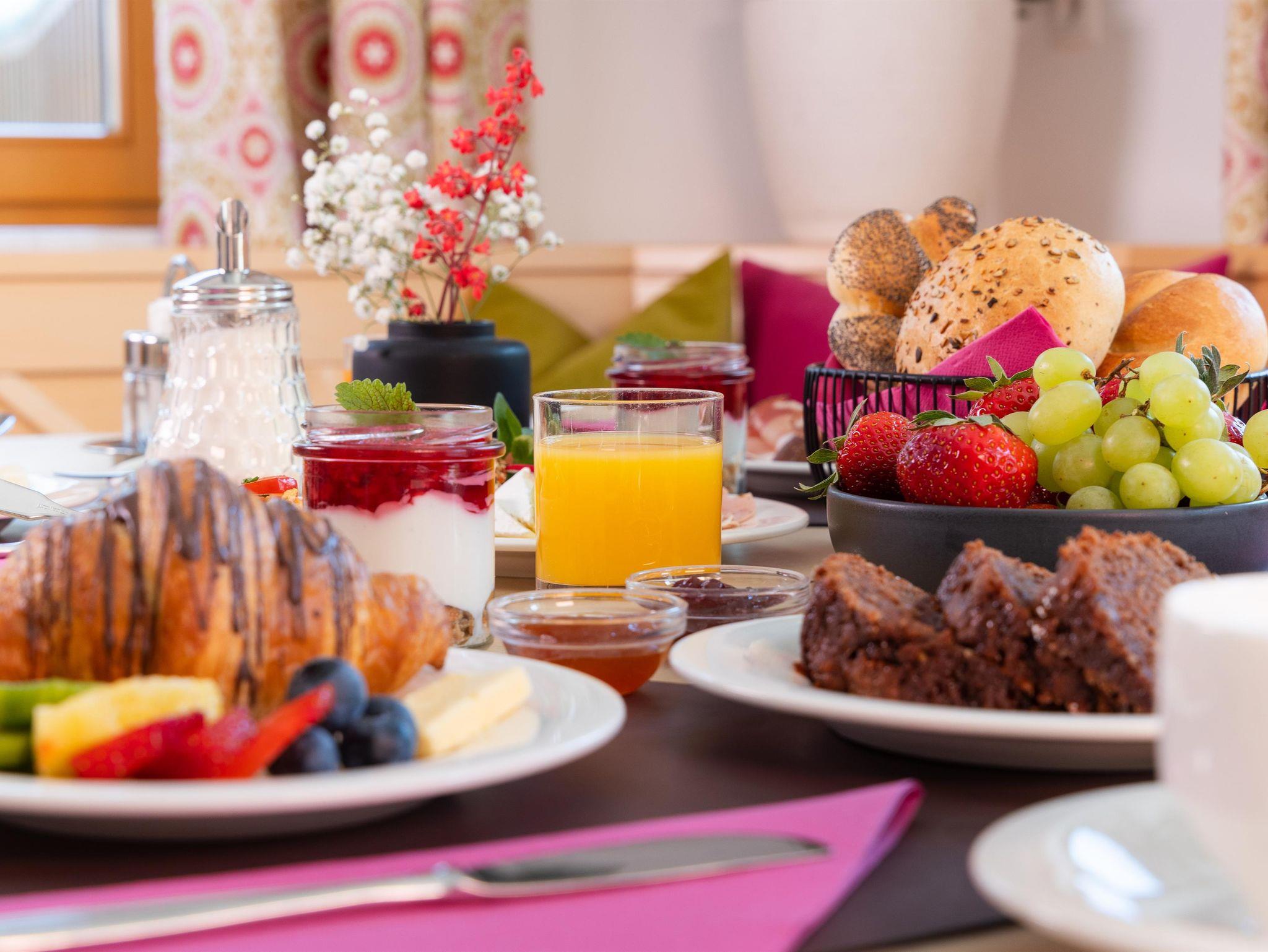 Gemütlich eingerichtete Zimmer mit Zirben- od. Fichtenholz sowie 1 Appartement (4 – 6 Personen, ca. 90 m²) laden zu einem entspannten Urlaub ein. Der Morgen beginnt mit einem herzhaften und gesunden Frühstücksbuffet * Ruhige und doch zentrale Lage: direkter Einstieg in die 4-Berge-Skischaukel - nur ca. 200 m zur Planai-West * Stadtzentrum ca. 10 Gehminuten entfernt * Ennsradweg u. Tennisplätze befinden sich in unmittelbarer Nähe * Großer Garten mit Kinderspielplatz * Wellnessbereich mit Sauna, Dampfbad, Infrarot und Ruheraum (im Sommer nicht in Betrieb!) * Sommercard-Partnerbetrieb*
