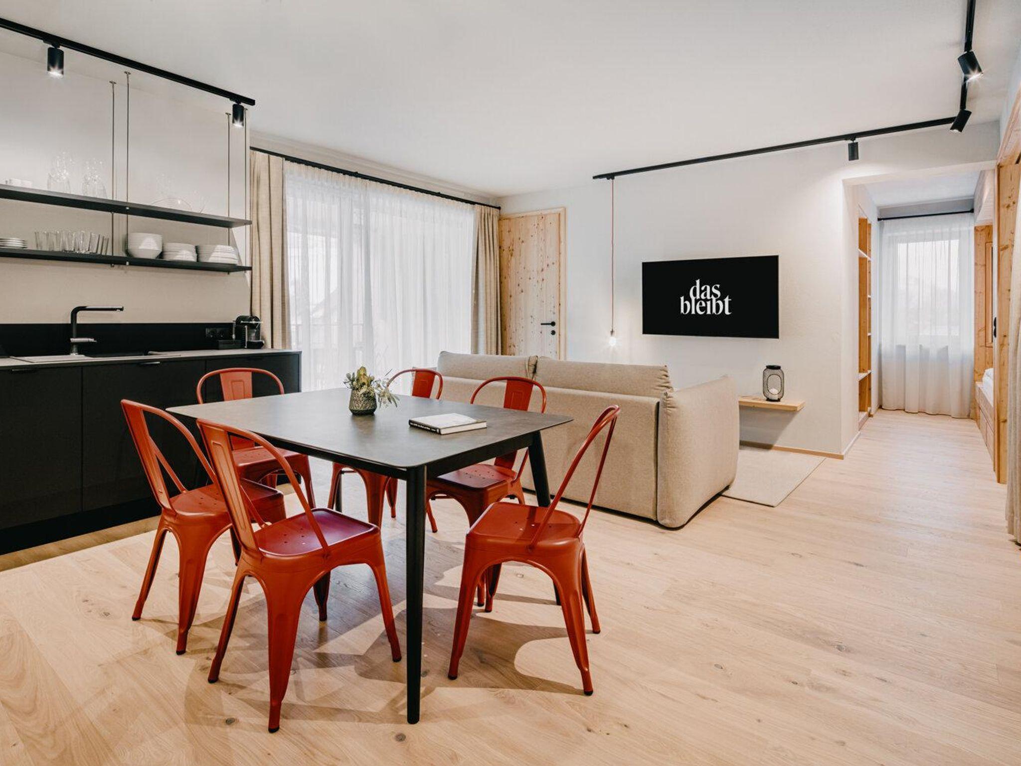 Egal ob ihr frühmorgens raus wollt, um die Pisten und Berge der Region zu entdecken oder euch lieber ins Oversize-Bett kuschelt, um einen gemütlichen Fernseh-Nachmittag zu verbringen – unsere Cosy Suite mit zwei Schlafzimmern und einer geräumigen Wohnküche ist und bleibt die richtige Wahl. Und haben wir schon von der Loggia mit der privaten Zirbensauna erzählt?