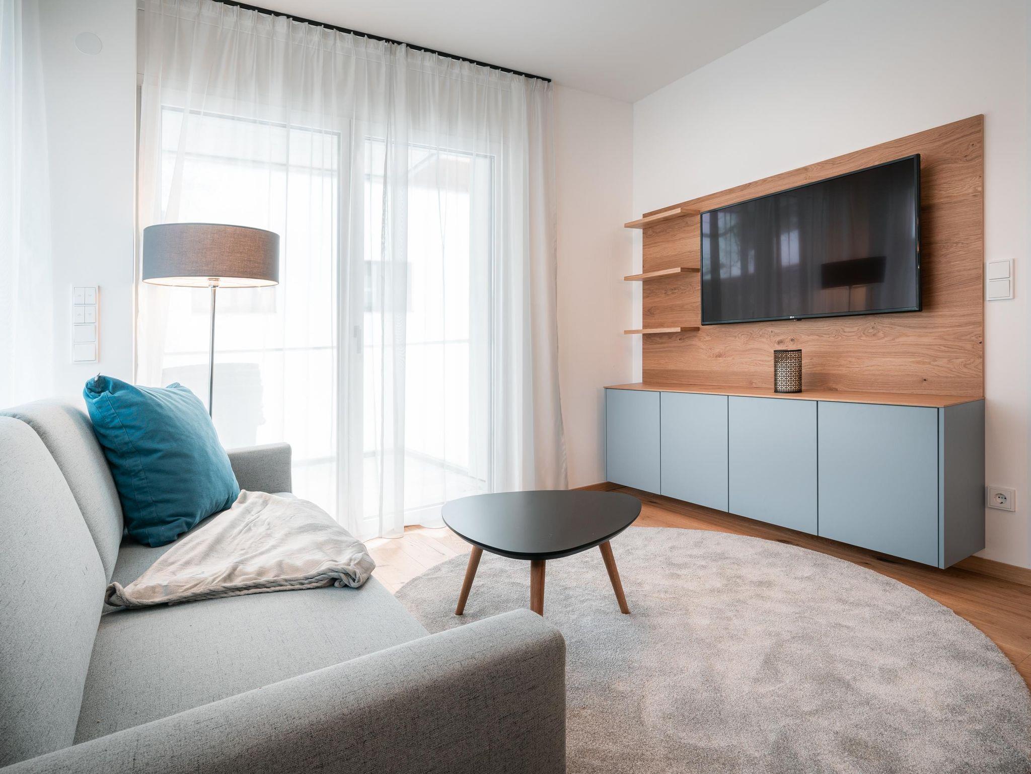 11 Appartements – von Garden, Studio, Comfort, Superior und Penthouse – jedes mit Balkon oder Terrasse, jedes ruhig, ein bis zwei Schlafzimmer, komplett ausgestattete Küchen, Tiefgarage, Skiraum, Radraum, W-Lan… das ist der Conrad – Komfort!