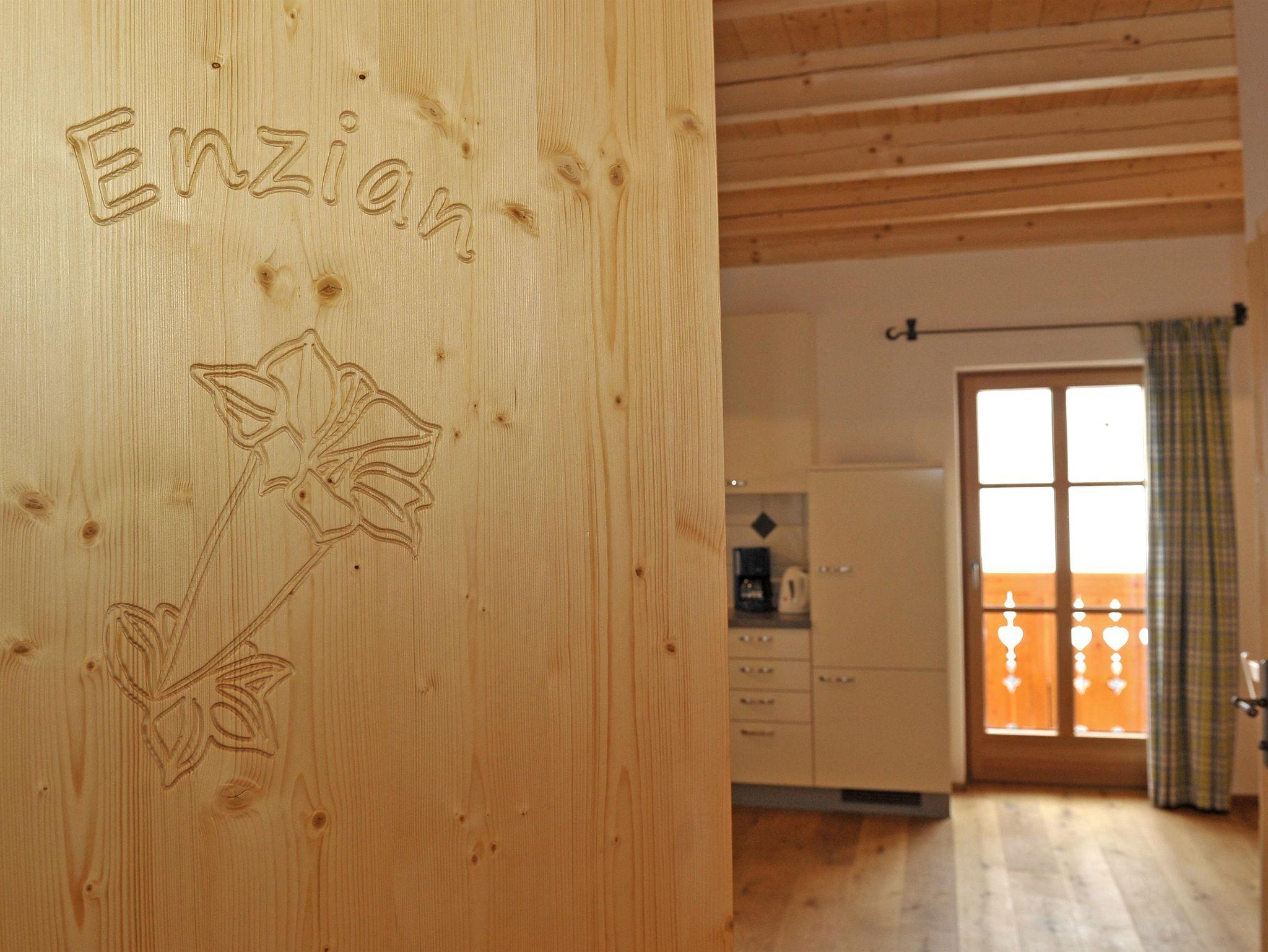 Für eine Familie mit vielen Kindern ist das Appartement Enzian ideal. Es befindet sich ein großes Doppelzimmer mit fixem Zustellbett im Appartement und ein weiteres Schlaflager (4-5 Personen) im ausgebauten Dachboden. Dieses Schlaflager ist über eine Stiege vom Wohnbereich aus erreichbar. Ein sehr geräumiges Bad sowie ein getrenntes WC und eine schöne Wohnküche warten auf Sie.