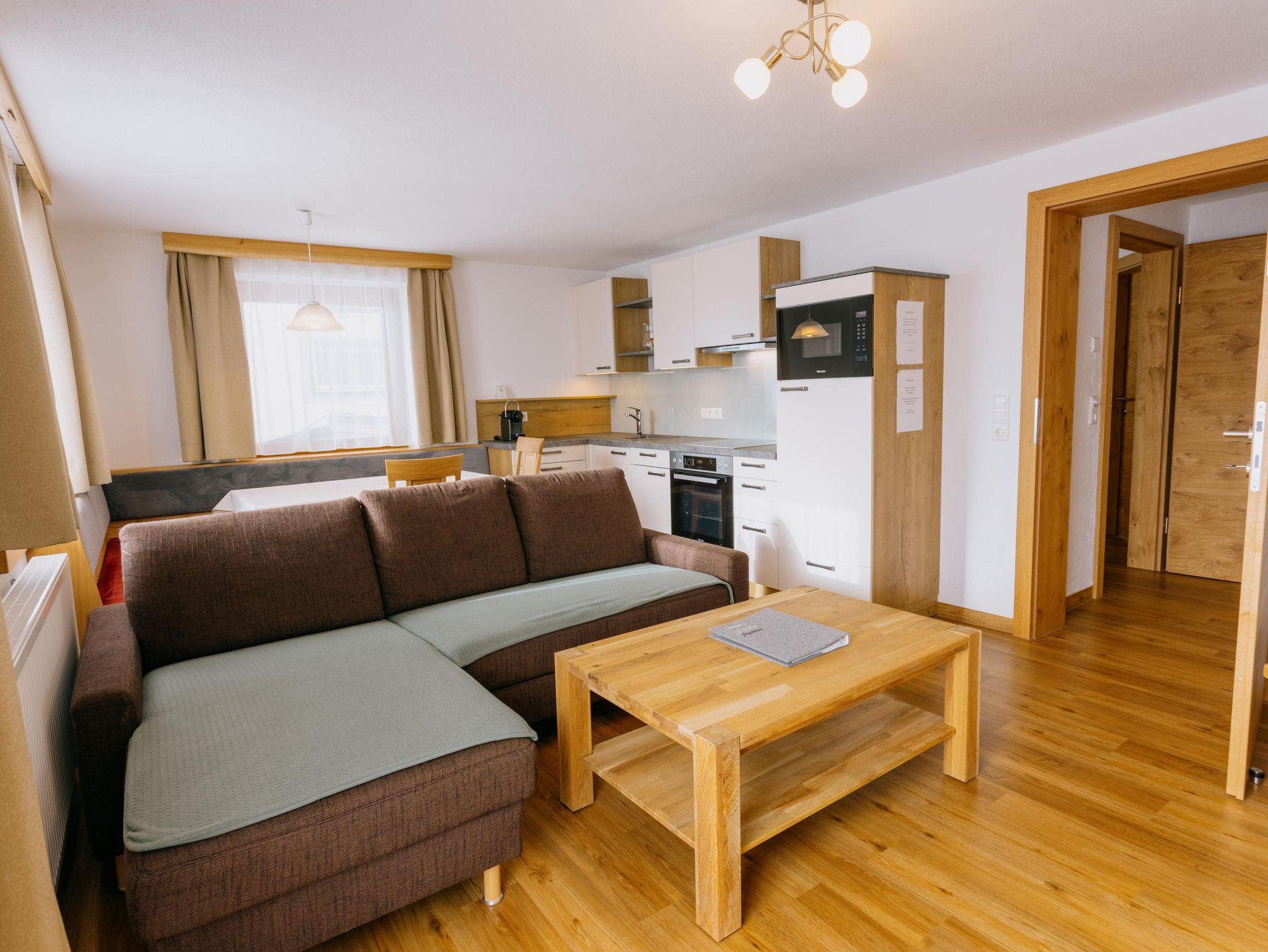 Die 2025 komplett neu errichtete Ferienwohnung Abendrot verfügt über einen großen Vorraum, eine großzügige Wohnküche mit Essbereich, ein Schlafzimmer mit Doppelbett und ein weiteres Schlafzimmer mit Stockbett. Beide Schlafzimmer verfügen über je einen Flat Tv und Balkon. Auf Anfrage ist hier auch eine fünfte Person in einem Notbett im Zimmer wo das Doppelbett steht möglich.