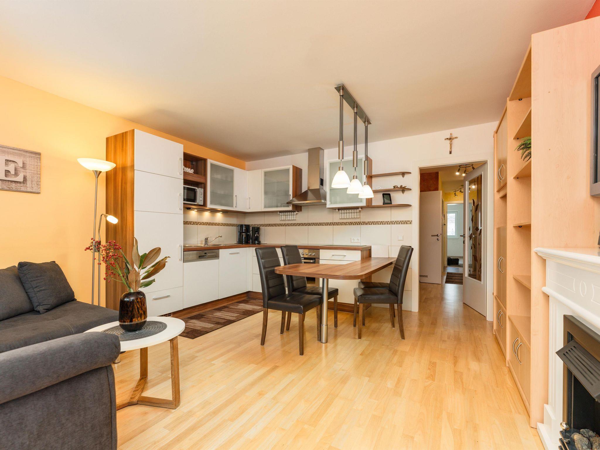 Es gibt viele tolle Ferienwohnungen in zentraler Lage, aber nur wenige, die so viel Harmonie vermitteln und so viel Komfort für Ihre Gäste bieten. Die Ferienwohnung Ulli ist liebevoll von den Eigentümern eingerichtet und ausgestattet worden. Heimische Materialien mit modernem Interieur vermitteln Gemütlichkeit und Komfort. Die Ferienwohnung Ulli hat eine perfekte Lage - nur 300 m vom Stadtzentrum Schladming, 500 m vom Bahnhof, 1 km von der Talstation Planai West oder Planet Planai entfernt und in unmittelbarer Nähe zur Bushaltestelle, Supermarkt oder zahlreichen Restaurants und Bars. Gelegen ist das Appartement Ulli im 2. Stock eines Appartementhauses und bietet Platz für bis zu 4 Personen. Die 50m² Wohnfläche sind aufgeteilt in einen gemütlichen Wohnraum mit voll ausgestatteter Küche und Sofa, einem Balkon mit wunderbarem Ausblick auf die Planai und Hochwurzen, ein separates Schlafzimmer mit Doppelbett, ein Badezimmer mit Dusche sowie ein WC. Ein eigener Skiabstellraum sowie ein Parkplatz im Carport direkt vor dem Haus sind weitere Annehmlichkeiten des Appartements. Überzeugen Sie sich selbst und verbringen Sie einige entspannte Urlaubstage im Sommer wie im Winter.
