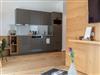 Jedes Studio ist mit einer voll ausgestatteten Küche inklusive Essecke ausgestattet, ergänzt durch einen komfortablen Wohnbereich mit Kabel-TV. Der private Balkon lädt ein, die frische Bergluft zu genießen und das alpine Panorama zu erleben.